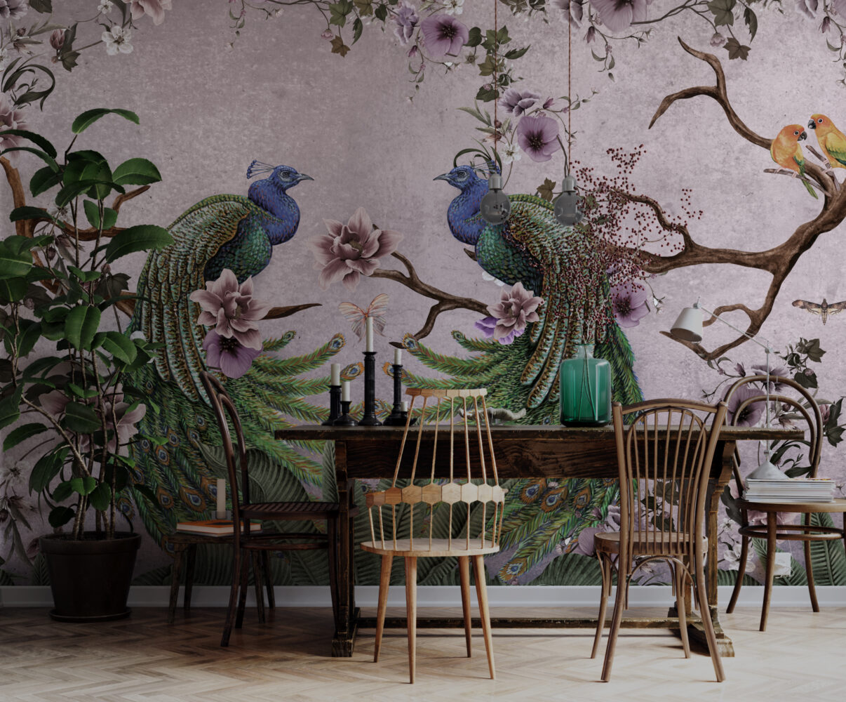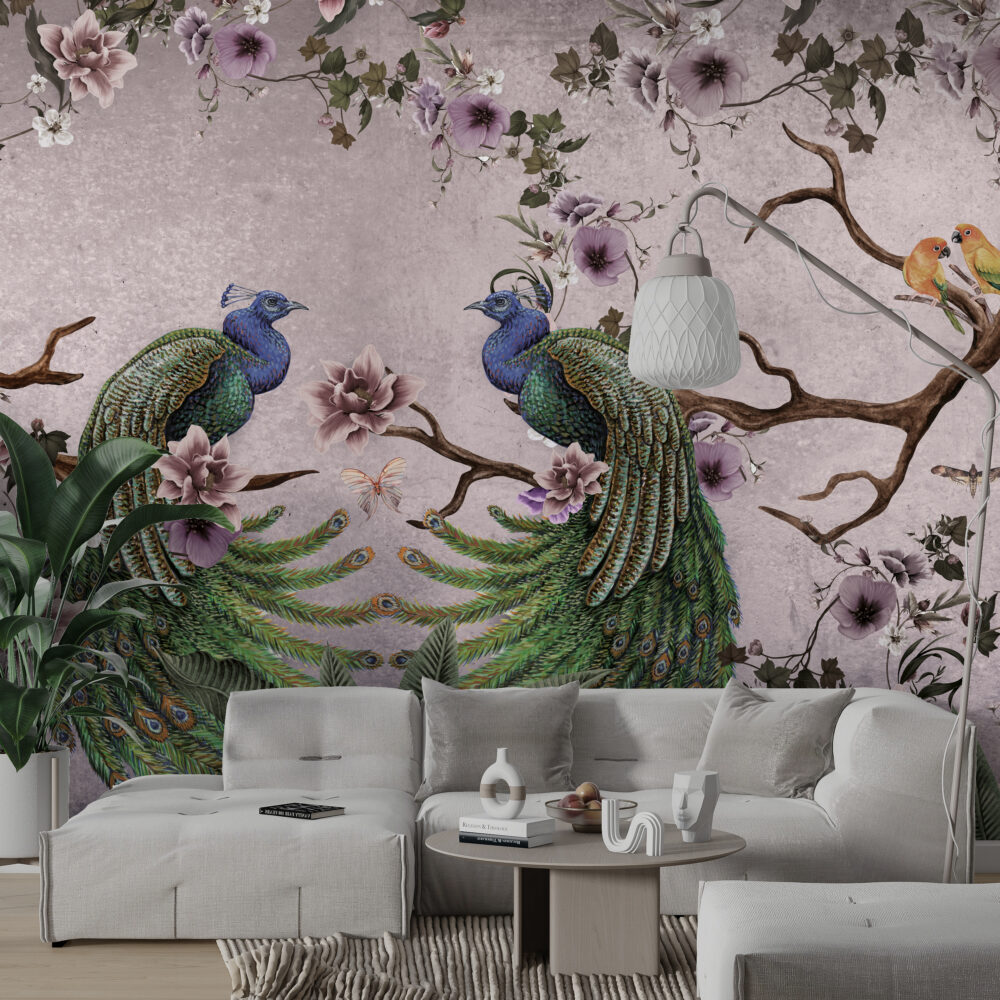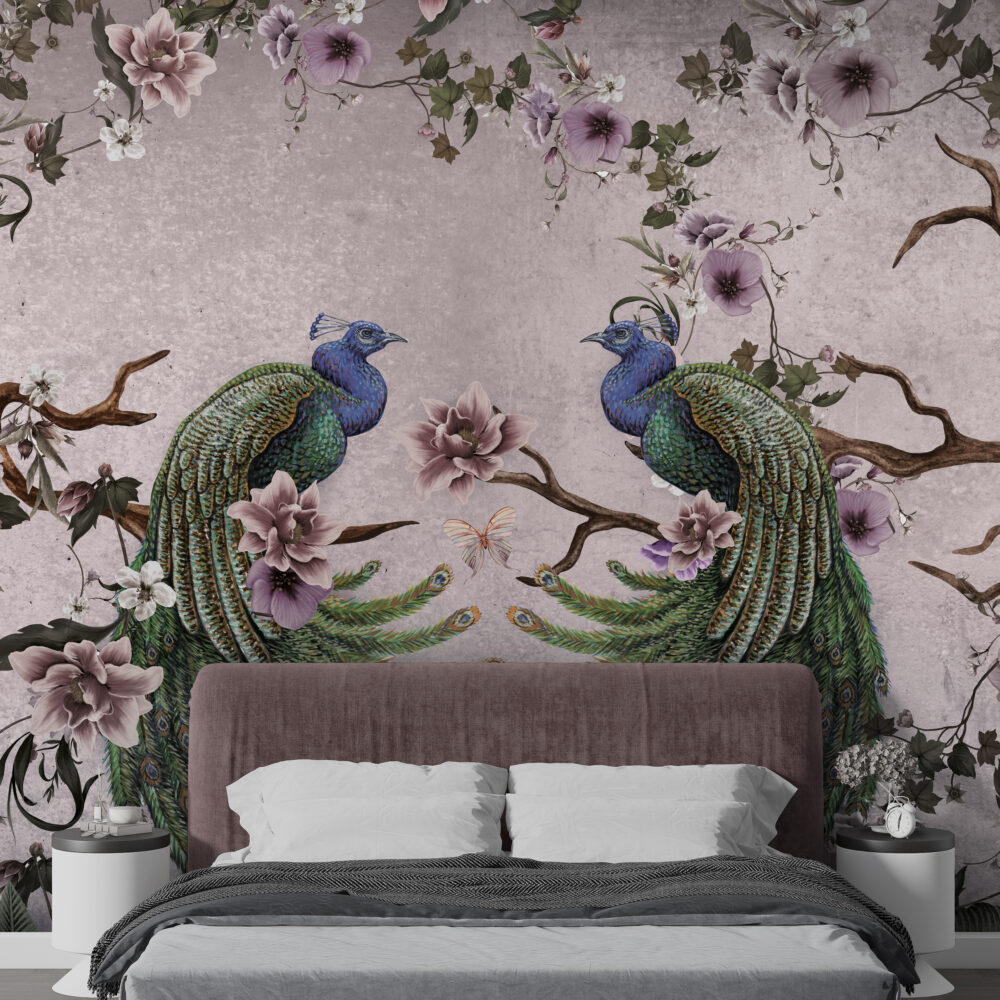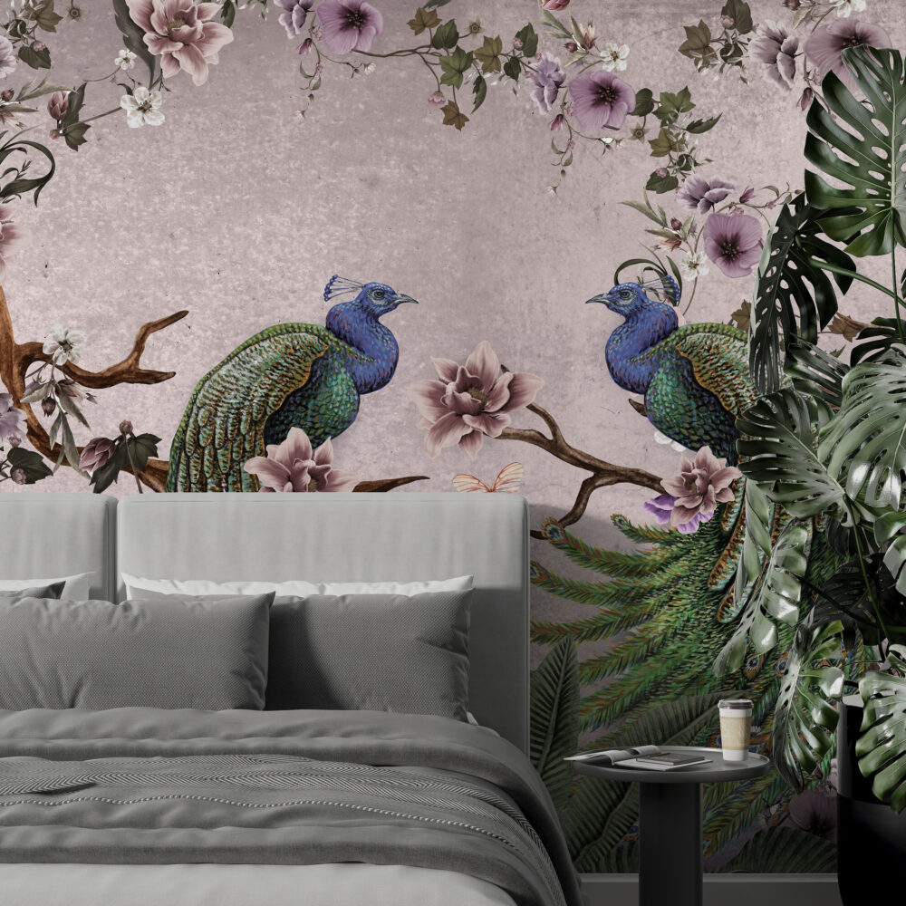 Pembe Tonlarda Tavus Kuşları Ve Çiçekler Duvar Kağıdı üretimi, uygulanmasını isteyeceğiniz boyut ve konumuna uygun olarak talepleriniz doğrultusunda size özel imal edilir.