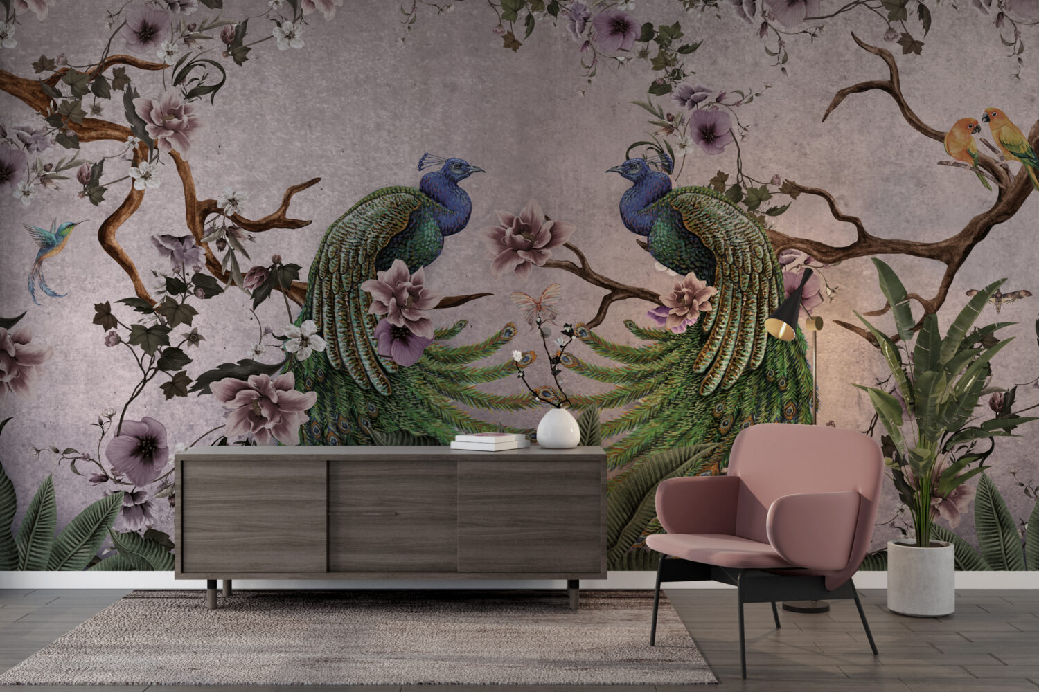 Pembe Tonlarda Tavus Kuşları Ve Çiçekler Duvar Kağıdı Duvar Kağıdı Ürün Bilgisi