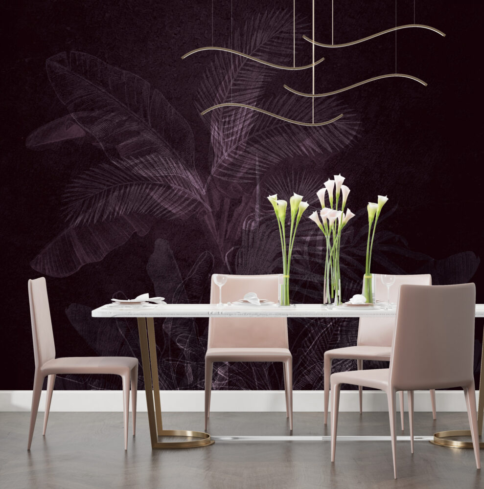 Pembe Tonlar'da Tropikal Yapraklar Duvar Kağıdı üretimi, uygulanmasını isteyeceğiniz boyut ve konumuna uygun olarak talepleriniz doğrultusunda size özel imal edilir.