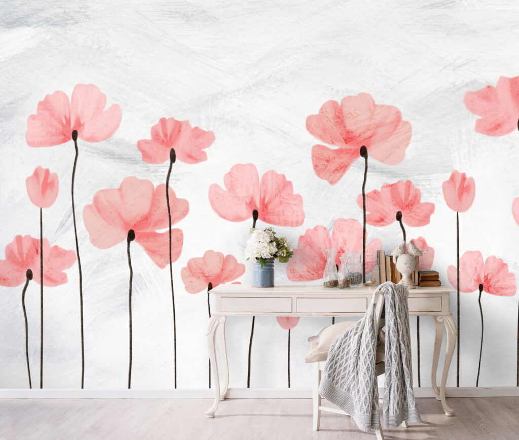 Pembe Yapraklı Çiçek Desenli 3D Duvar Kağıdı üretimi, uygulanmasını isteyeceğiniz boyut ve konumuna uygun olarak talepleriniz doğrultusunda size özel imal edilir.