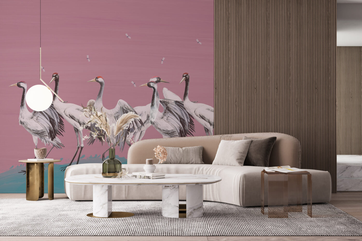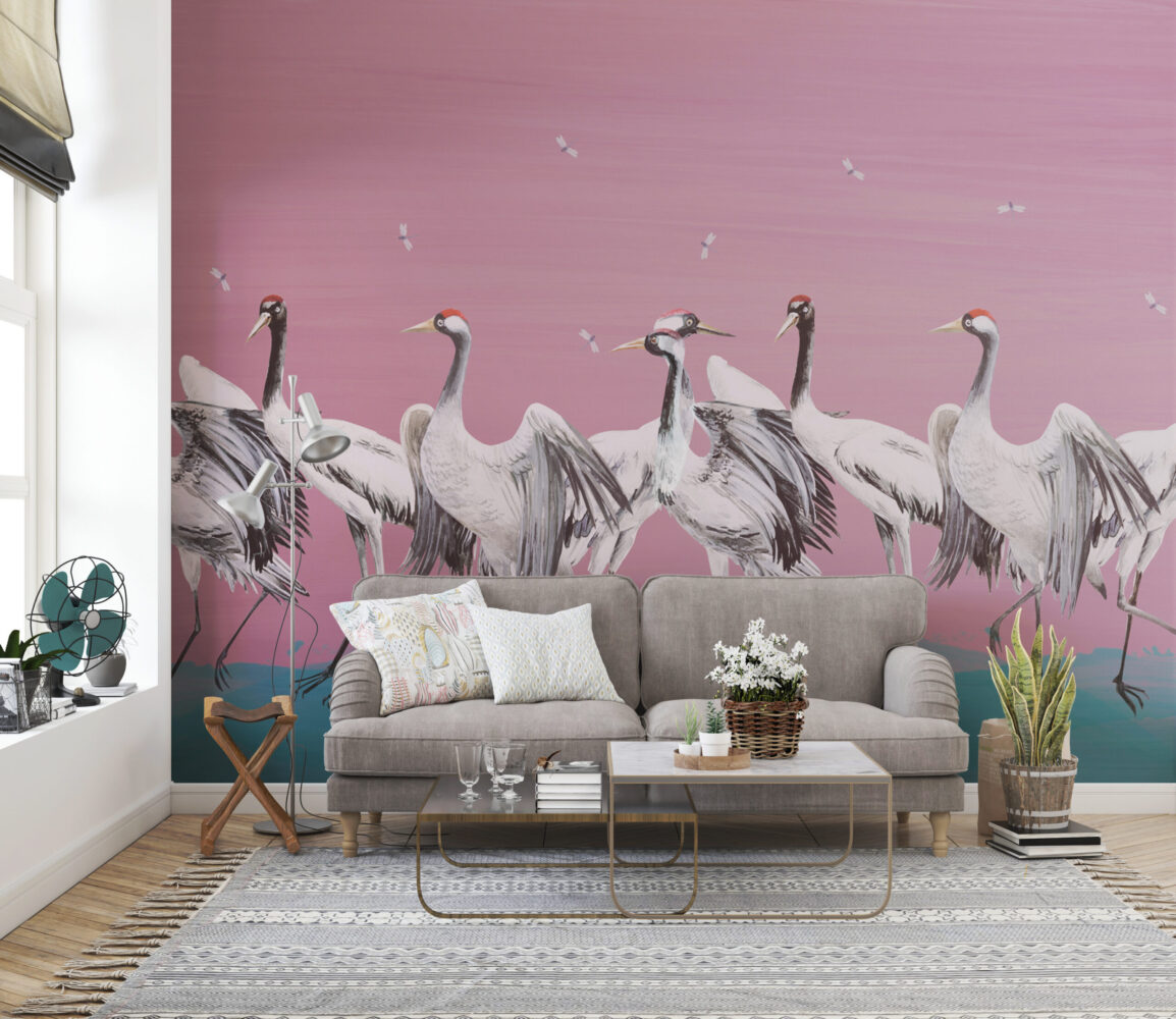 Pembe Zemin'li Turna Kuşu 3D Duvar Kağıdı Duvar Kağıdı Ürün Bilgisi