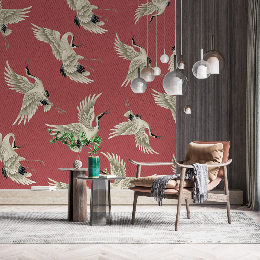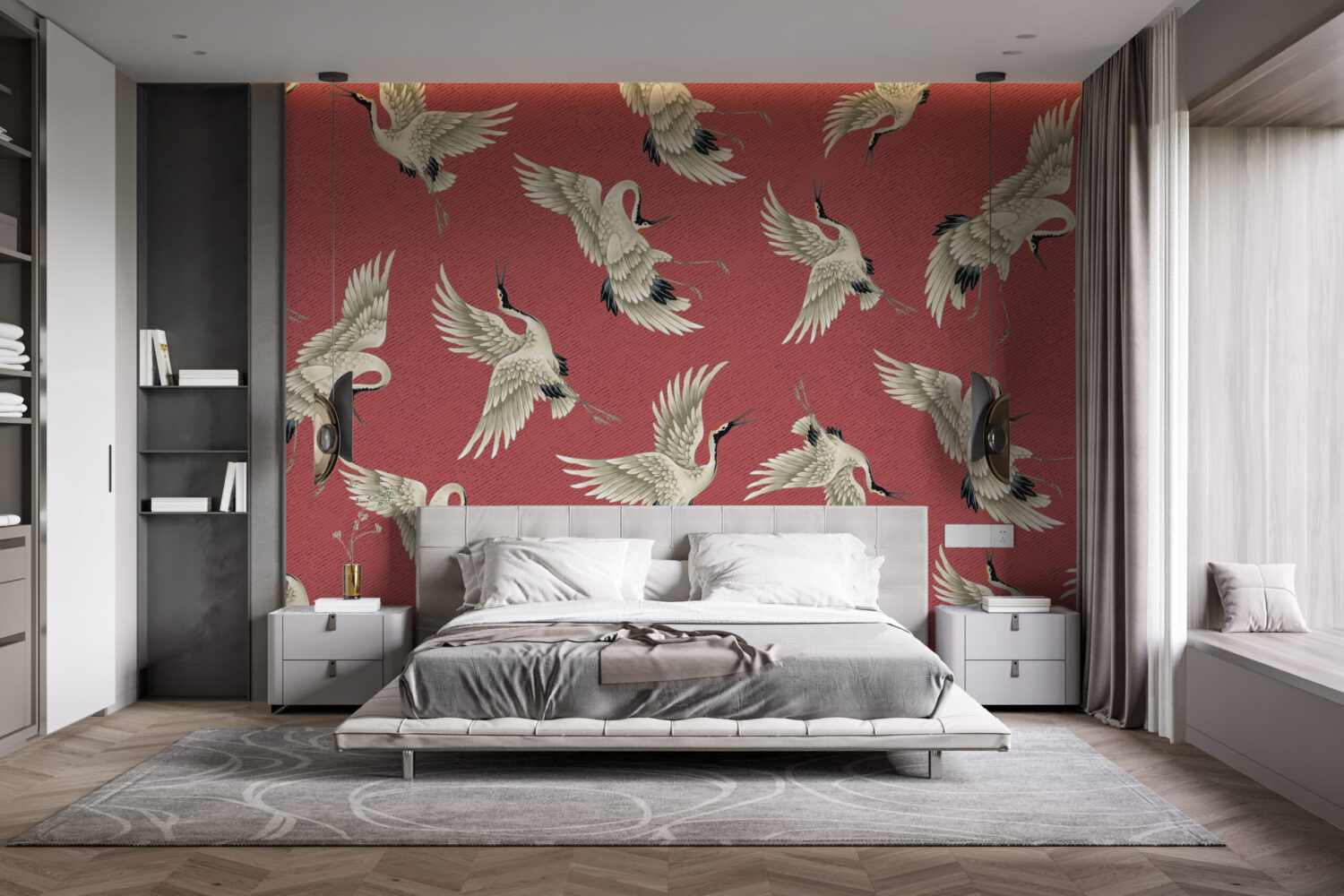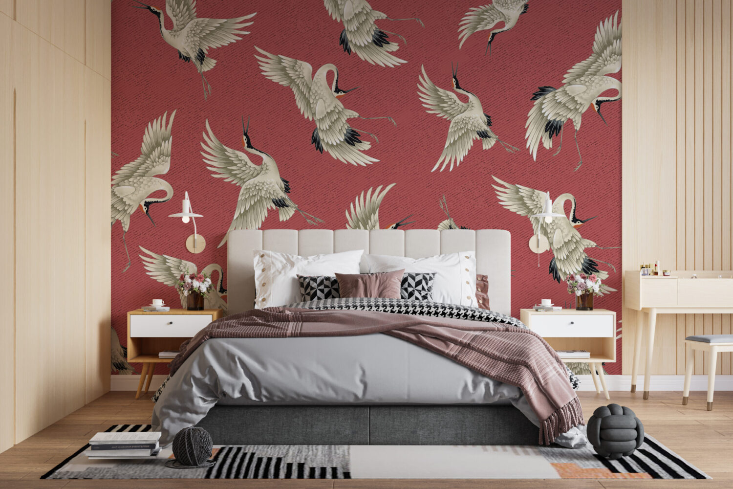 Pembe Zemin'li Uçan Kuşlar 3D Duvar Kağıdı Duvar Kağıdı Ürün Bilgisi