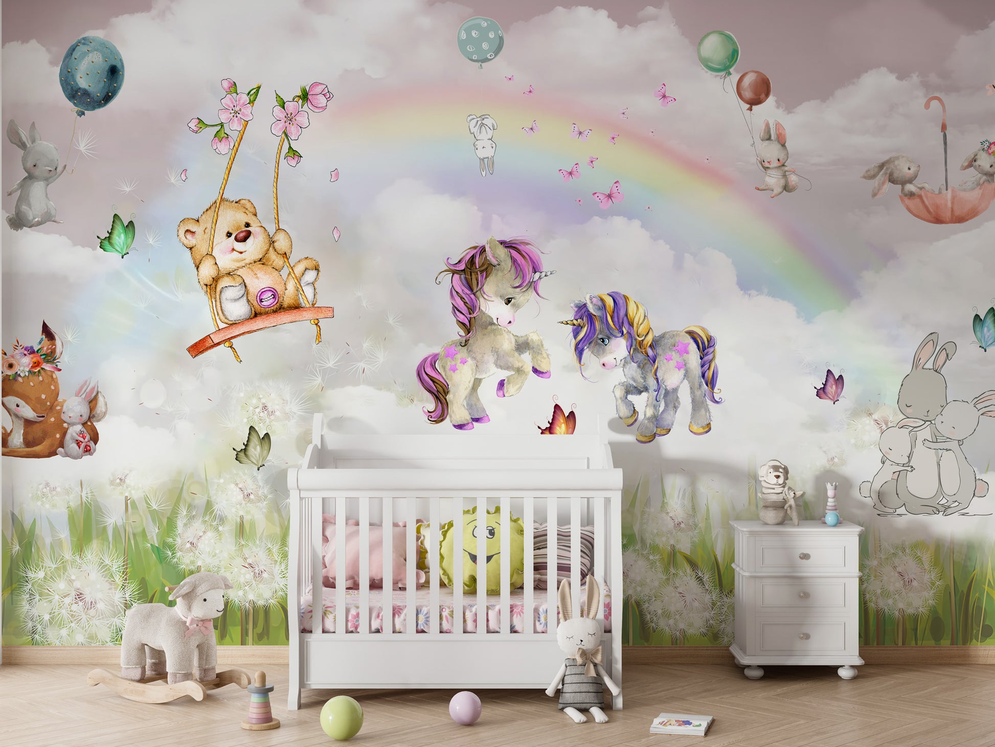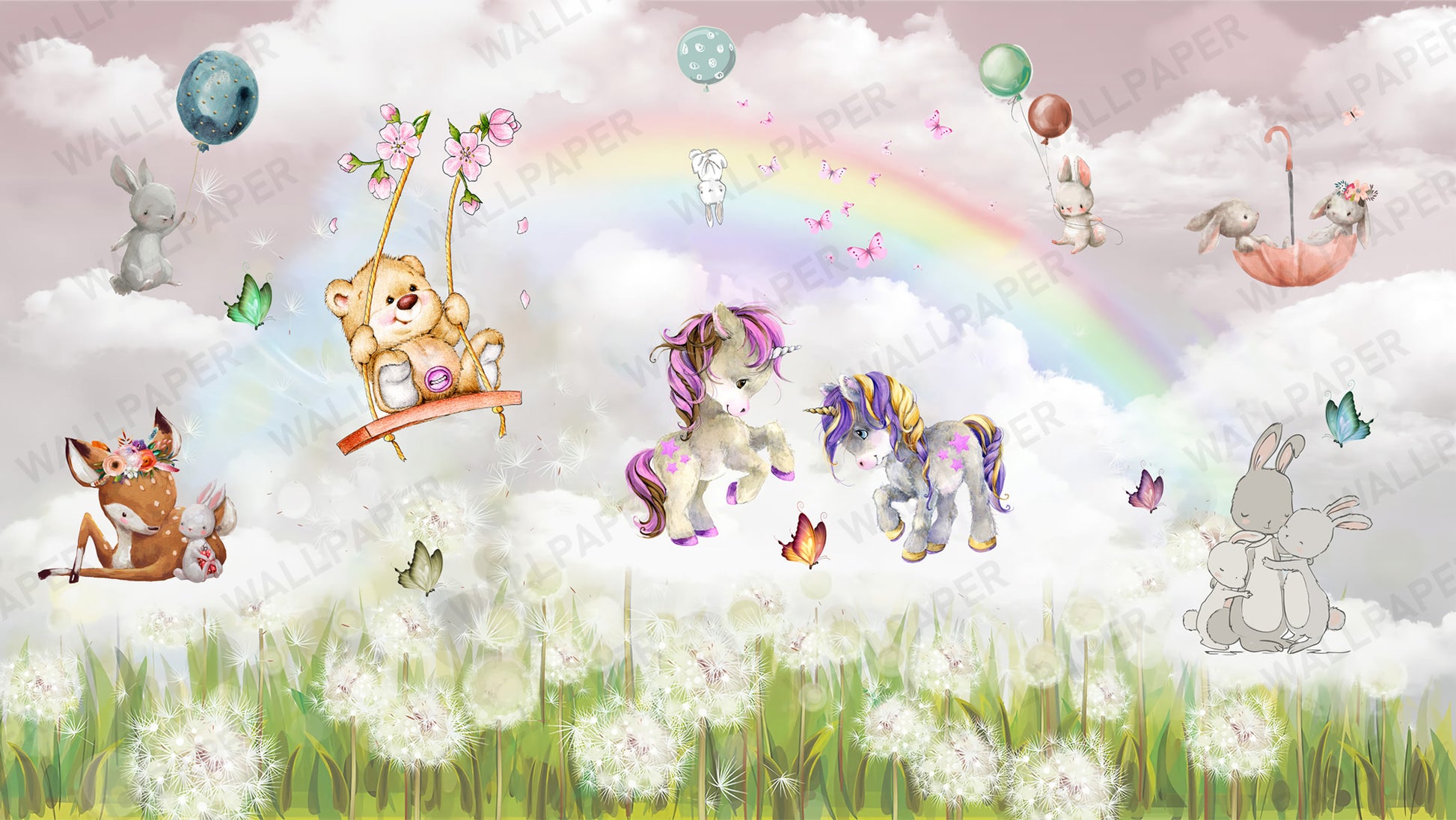 Pony ve Dostları Gökkuşağı Altında Duvar Kağıdı Duvar Kağıdı Ürün Bilgisi