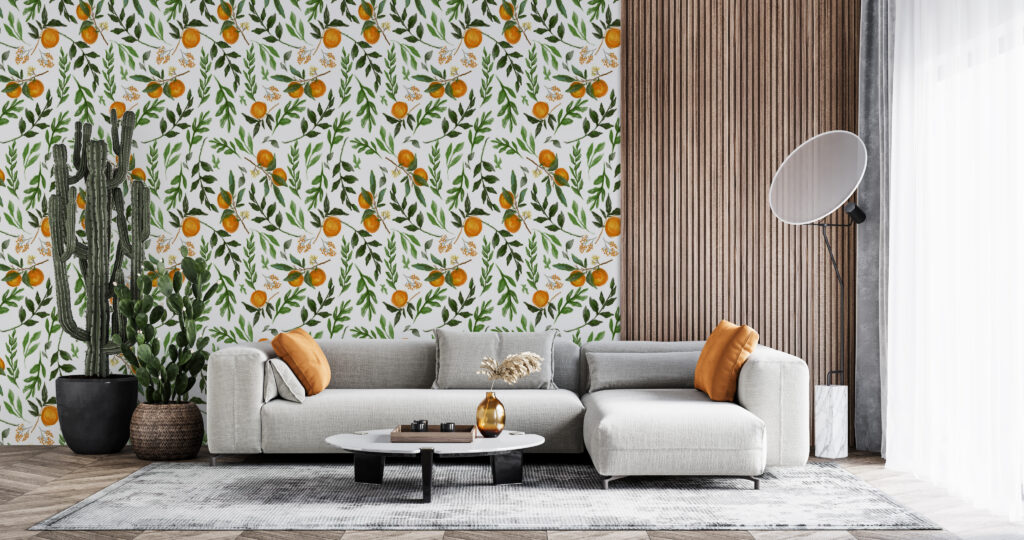 Portakal Dalı Desenli 3D Duvar Kağıdı