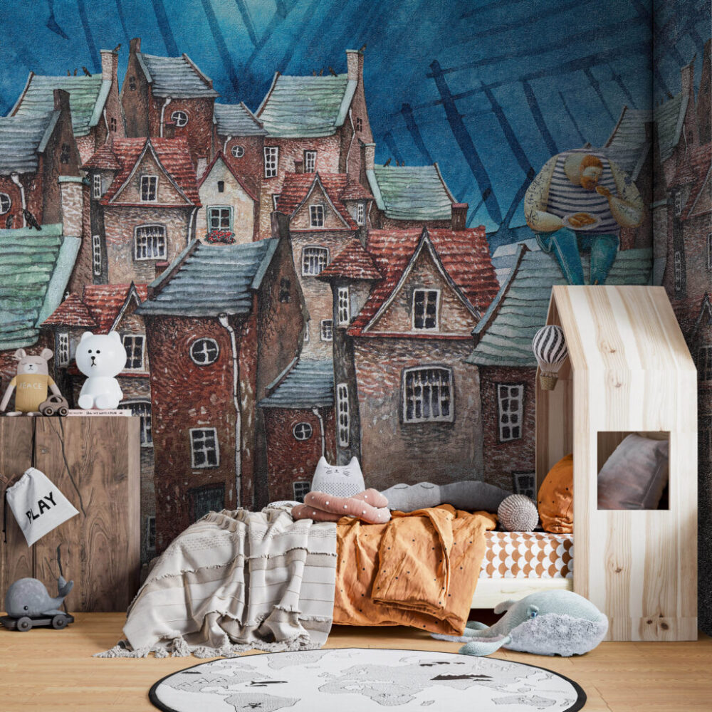 Renkli Binalar Çocuk Odası 3D Duvar Kağıdı | Duvar Kağıdı Marketi üretimi, uygulanmasını isteyeceğiniz boyut ve konumuna uygun olarak talepleriniz doğrultusunda size özel imal edilir.