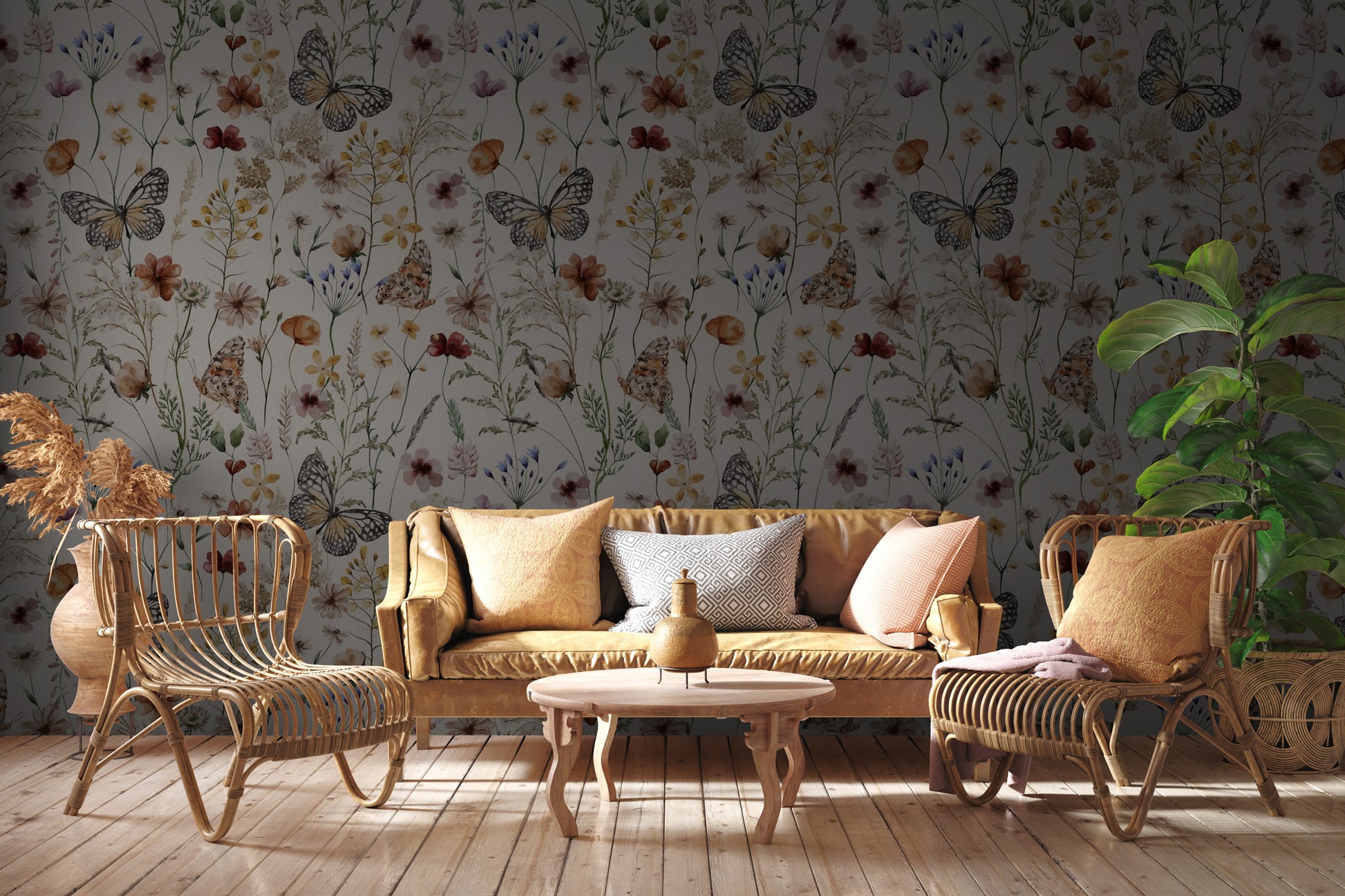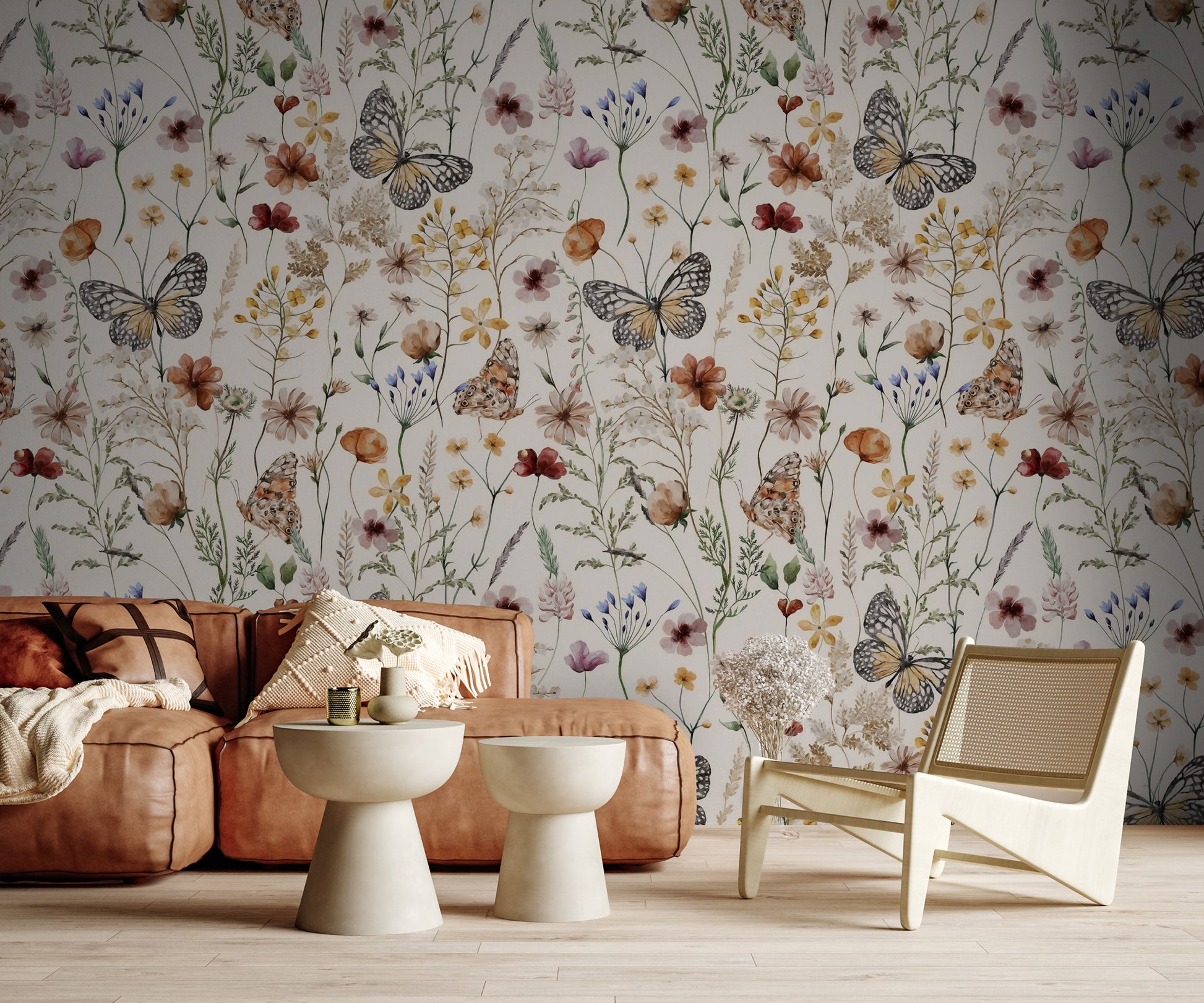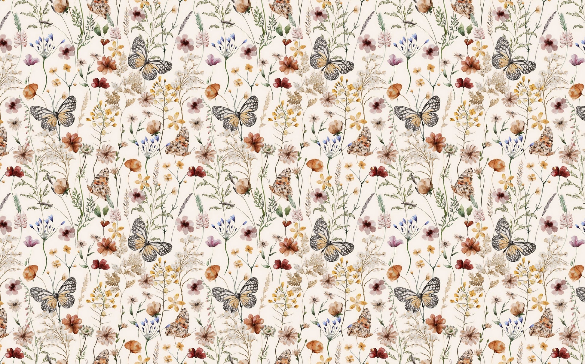 Renkli Çiçekler Arasında Kelebekler Duvar Kağıdı Duvar Kağıdı Ürün Bilgisi