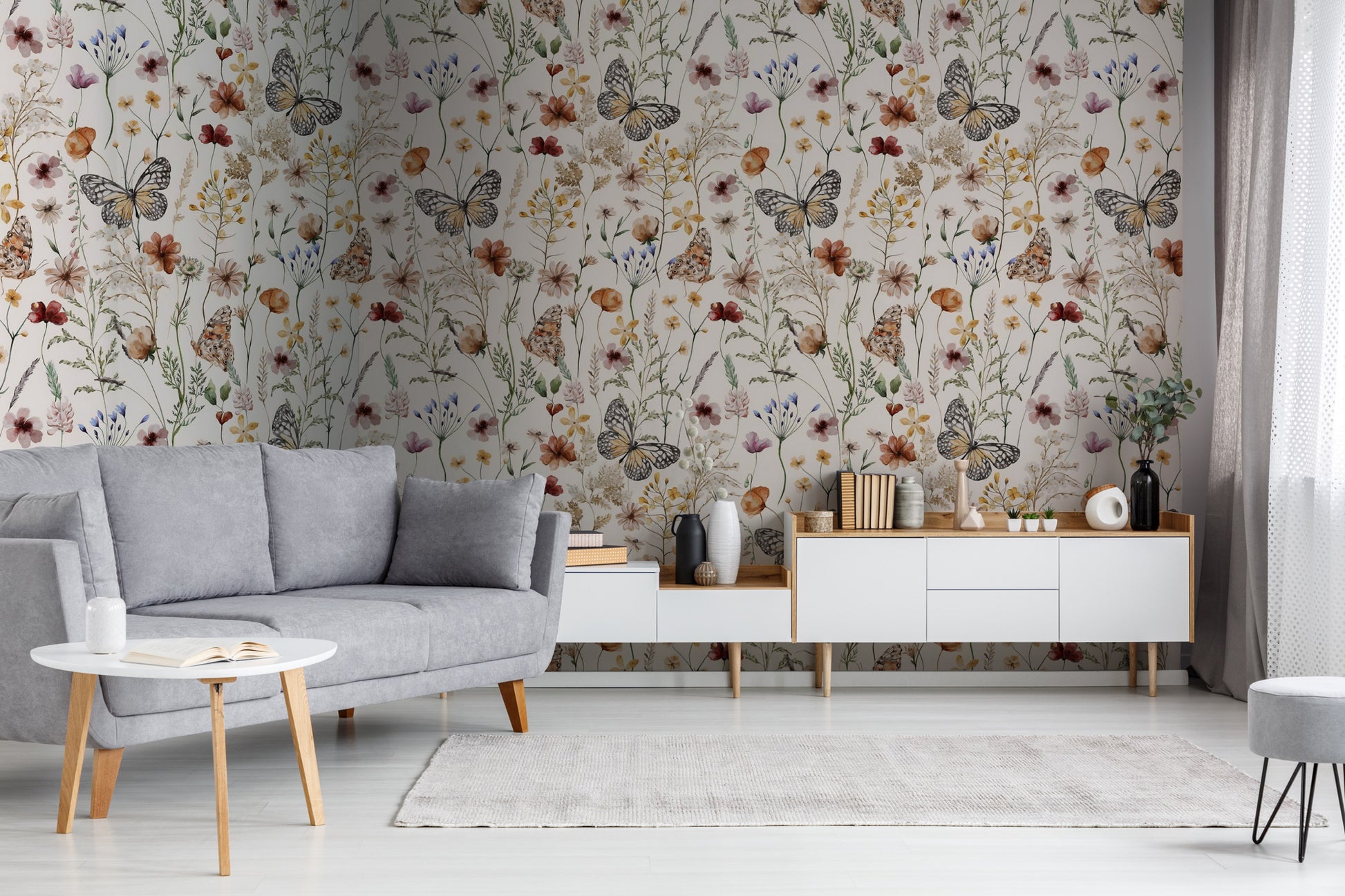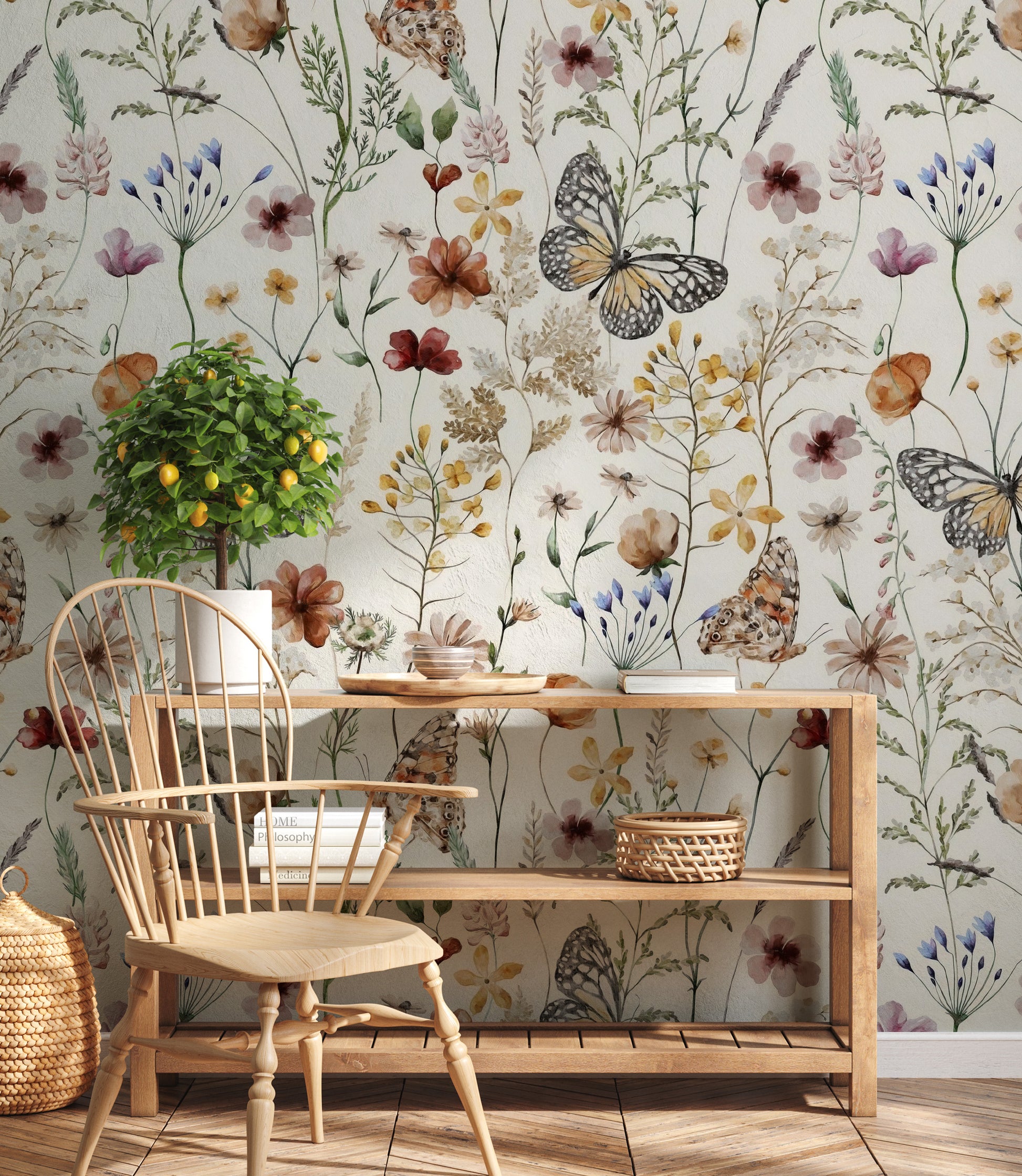 Renkli Çiçekler Arasında Kelebekler Duvar Kağıdı üretimi, uygulanmasını isteyeceğiniz boyut ve konumuna uygun olarak talepleriniz doğrultusunda size özel imal edilir.