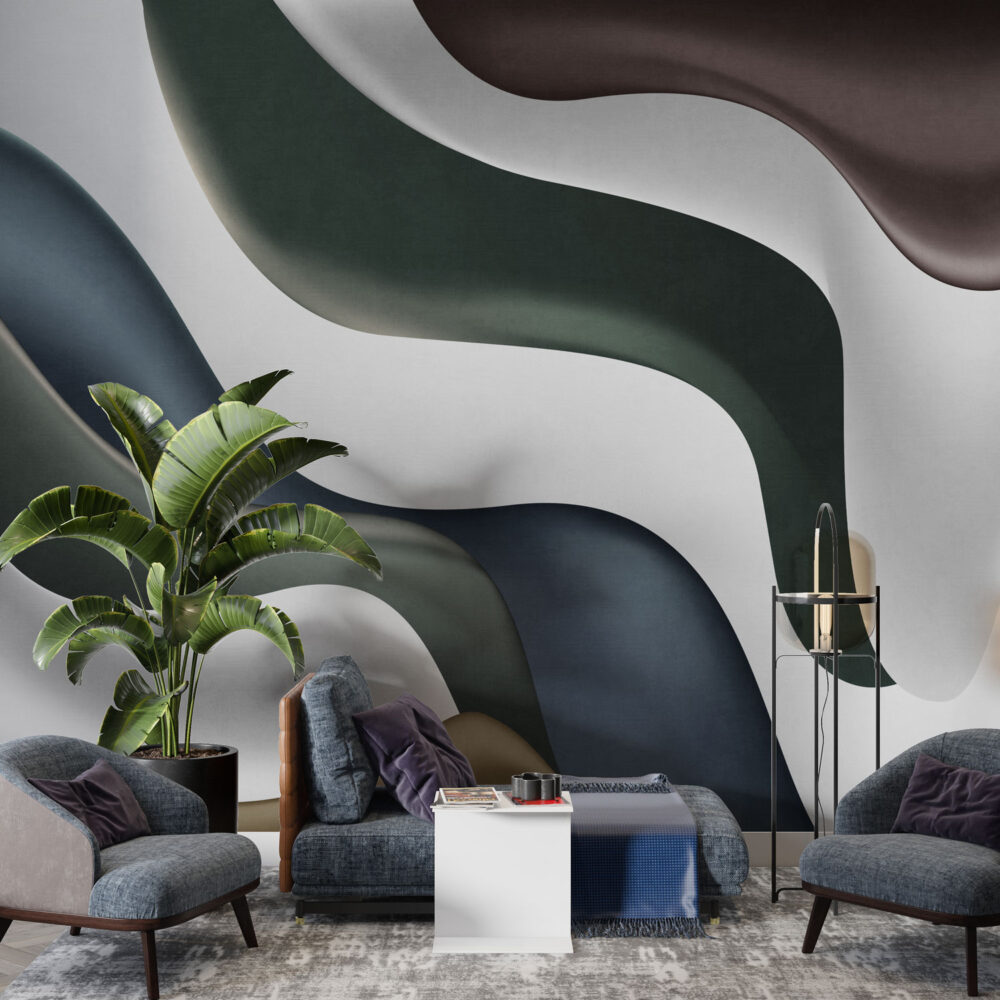 Renkli Dalgalar 3D Duvar Kağıdı