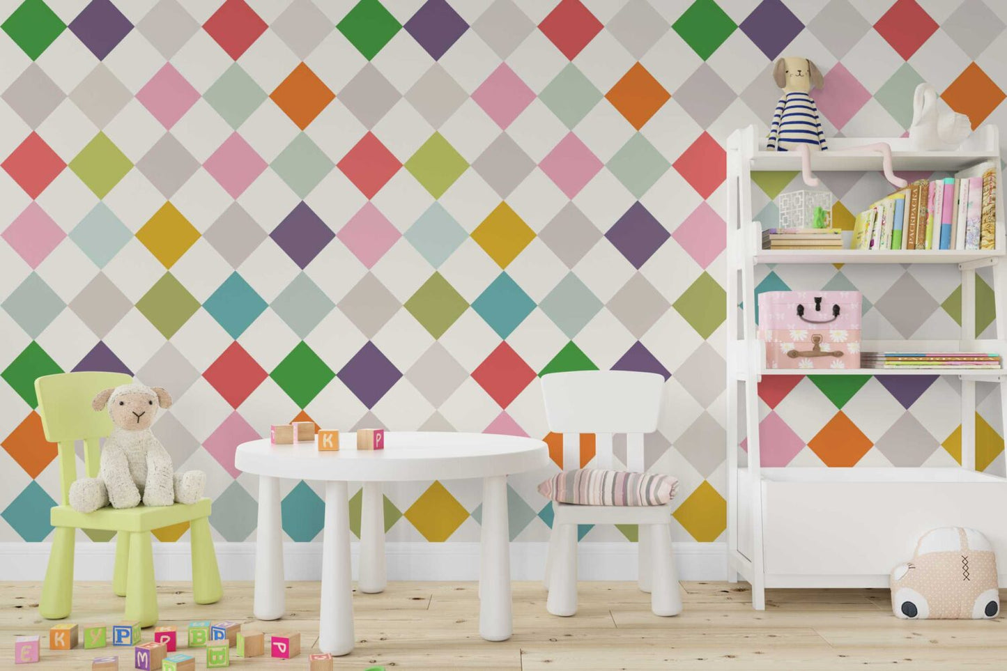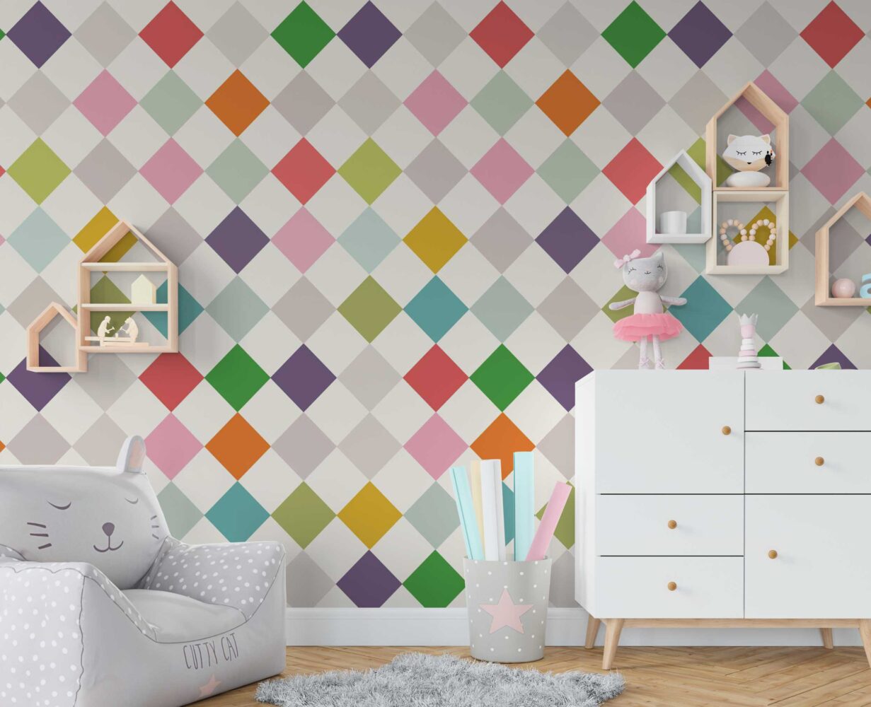 Renkli Geometrik Duvar Kağıdı üretimi, uygulanmasını isteyeceğiniz boyut ve konumuna uygun olarak talepleriniz doğrultusunda size özel imal edilir.