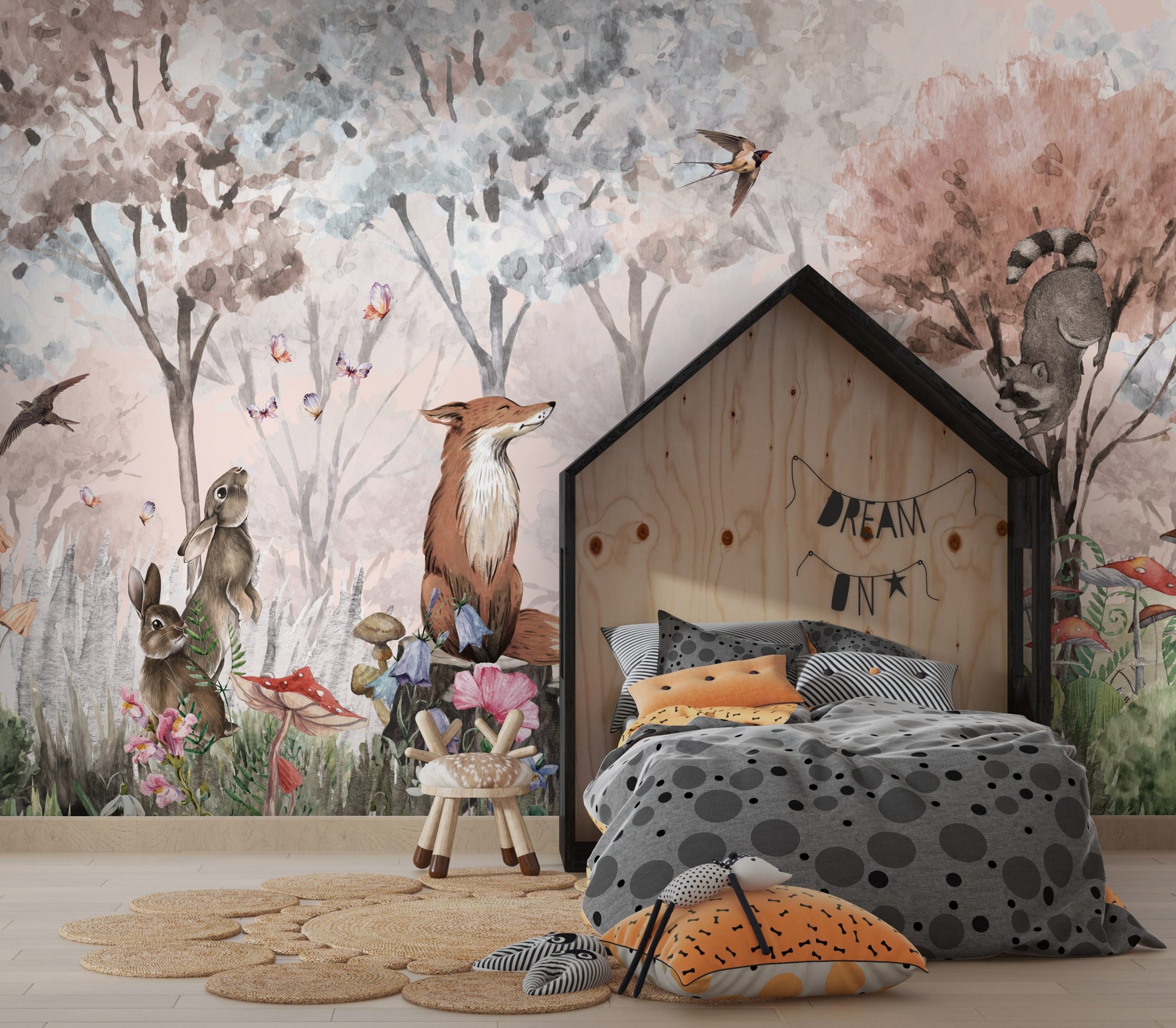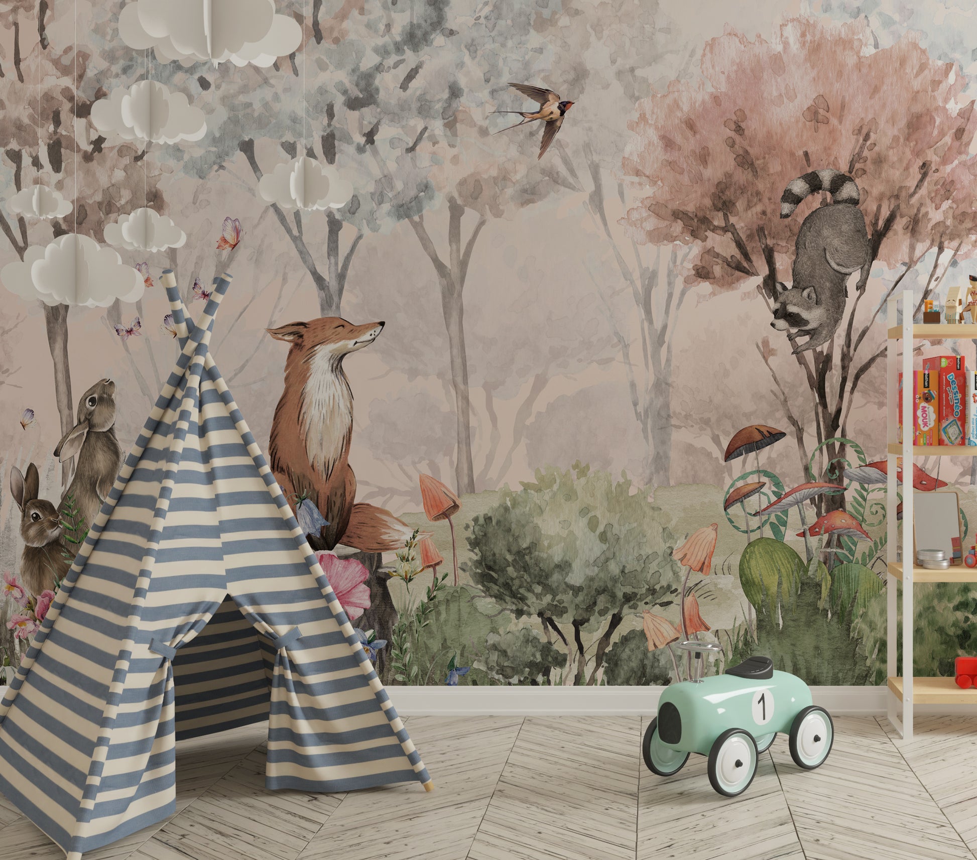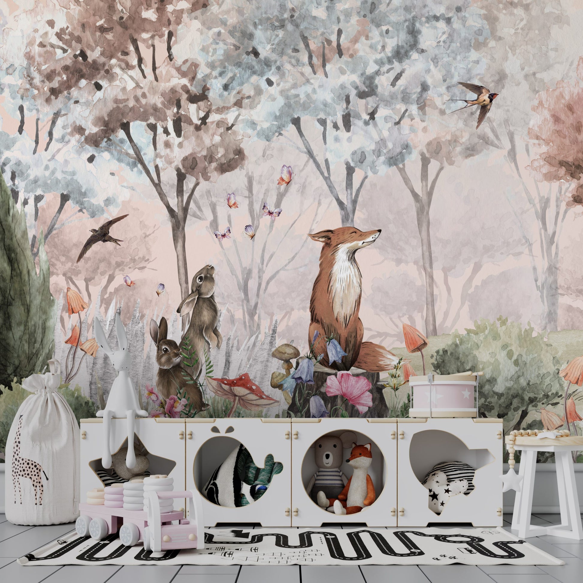 Renkli Ormanda Tilki Tavşan ve Arkadaşları Duvar Kağıdı üretimi, uygulanmasını isteyeceğiniz boyut ve konumuna uygun olarak talepleriniz doğrultusunda size özel imal edilir.