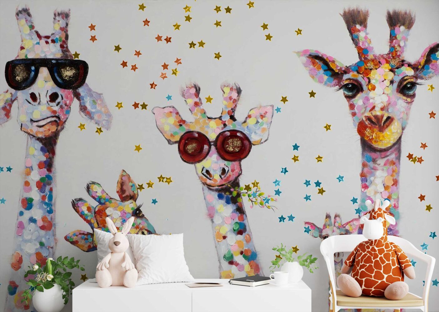 Renkli Sevimli Zürafa Duvar Kağıdı üretimi, uygulanmasını isteyeceğiniz boyut ve konumuna uygun olarak talepleriniz doğrultusunda size özel imal edilir.