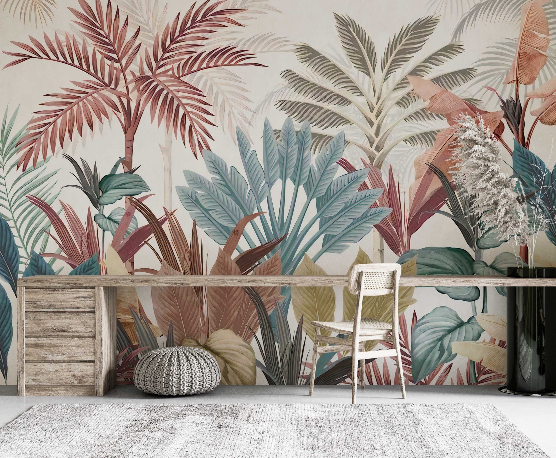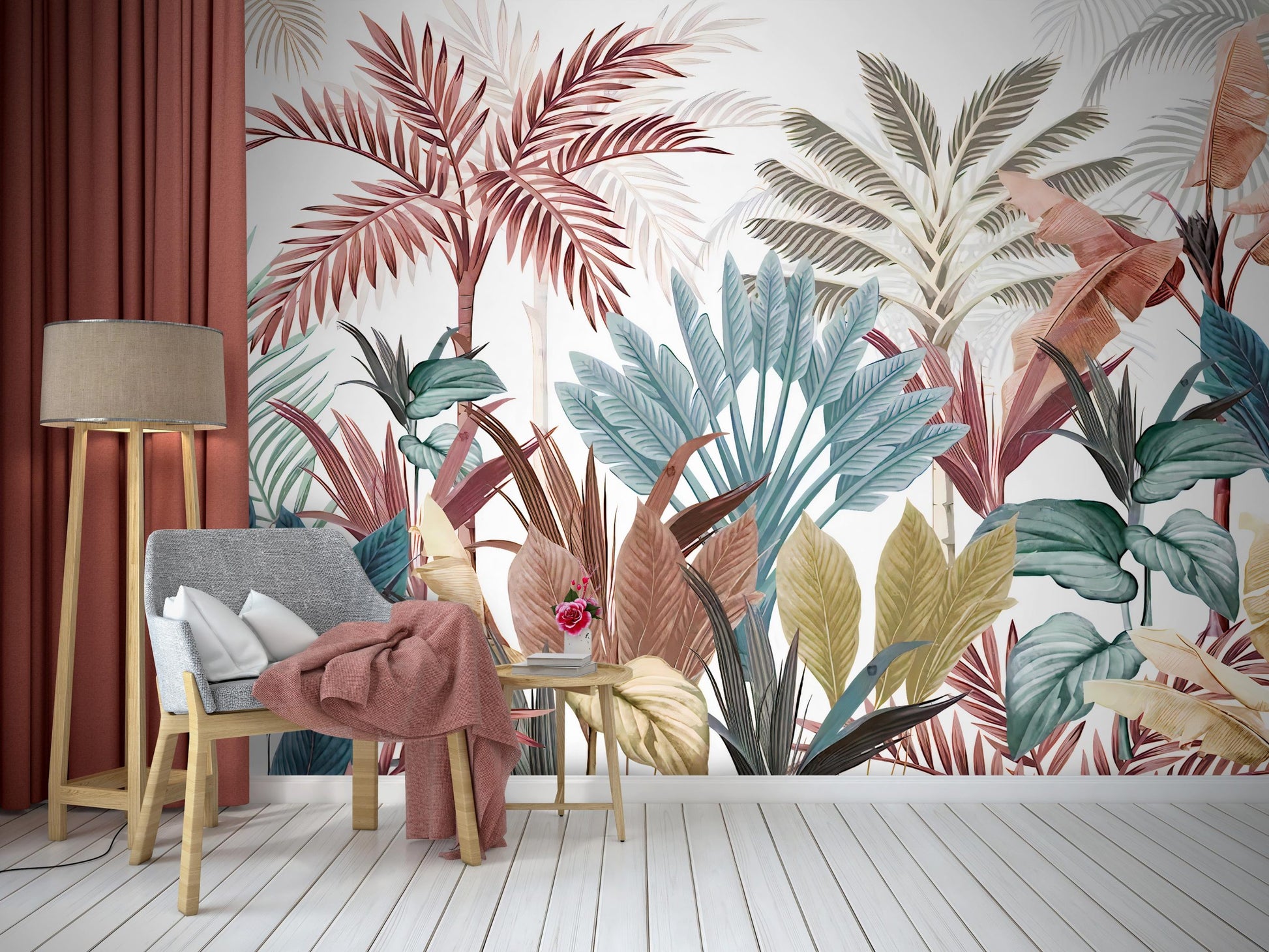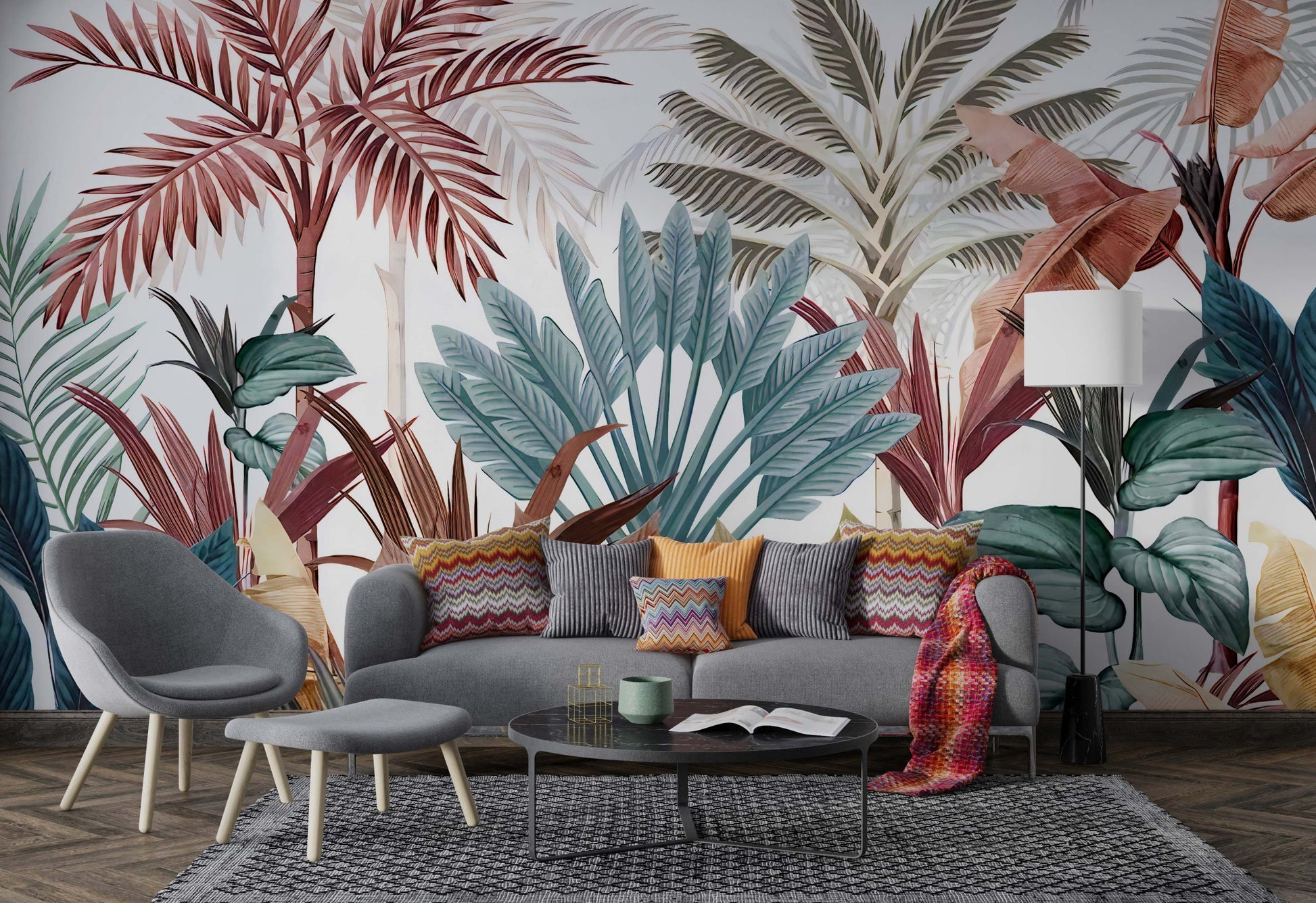 Renkli Tropikal Ağaçlar ve Yapraklar Duvar Kağıdı Duvar Kağıdı Ürün Bilgisi