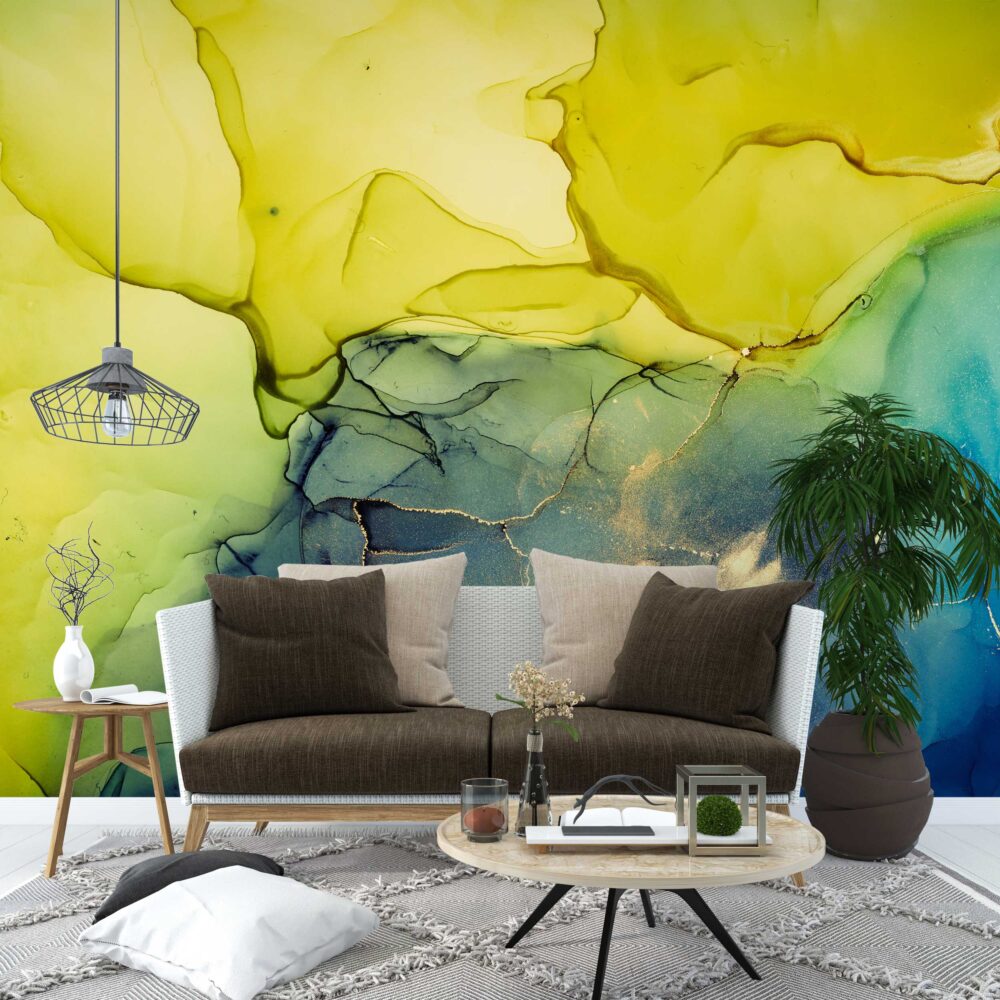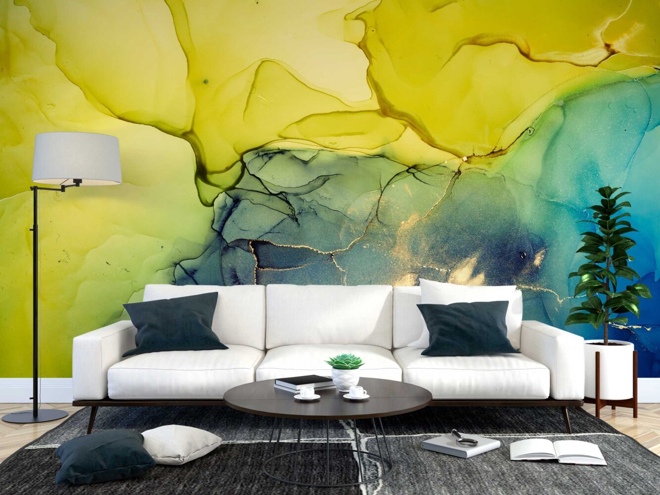 Sarı Mavi Renk Geçişli Duvar Kağıdı