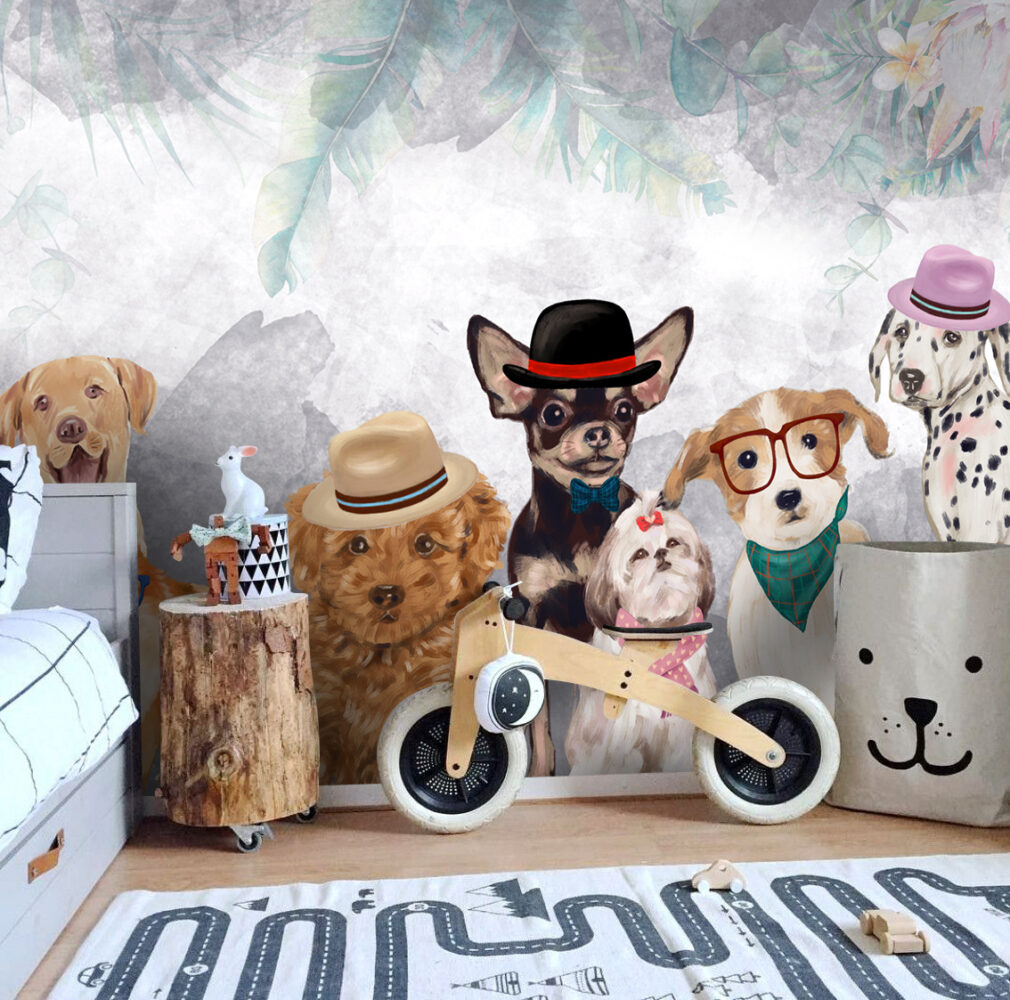Sevimli Köpekler Çocuklar için Duvar Kağıdı üretimi, uygulanmasını isteyeceğiniz boyut ve konumuna uygun olarak talepleriniz doğrultusunda size özel imal edilir.