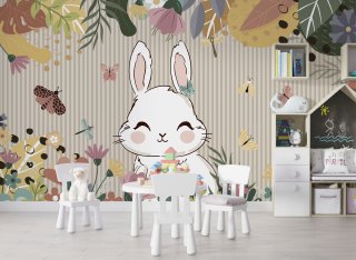 Sevimli Tavşan ve Kelebekli Duvar Kağıdı | Duvar Kağıdı Marketi Duvar Kağıdı Ürün Bilgisi