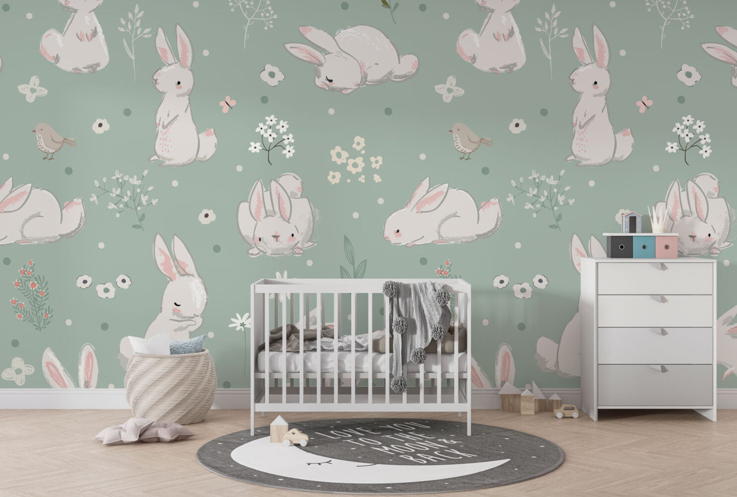 Sevimli Tavşanlar ve Kuşlar Duvar Kağıdı üretimi, uygulanmasını isteyeceğiniz boyut ve konumuna uygun olarak talepleriniz doğrultusunda size özel imal edilir.