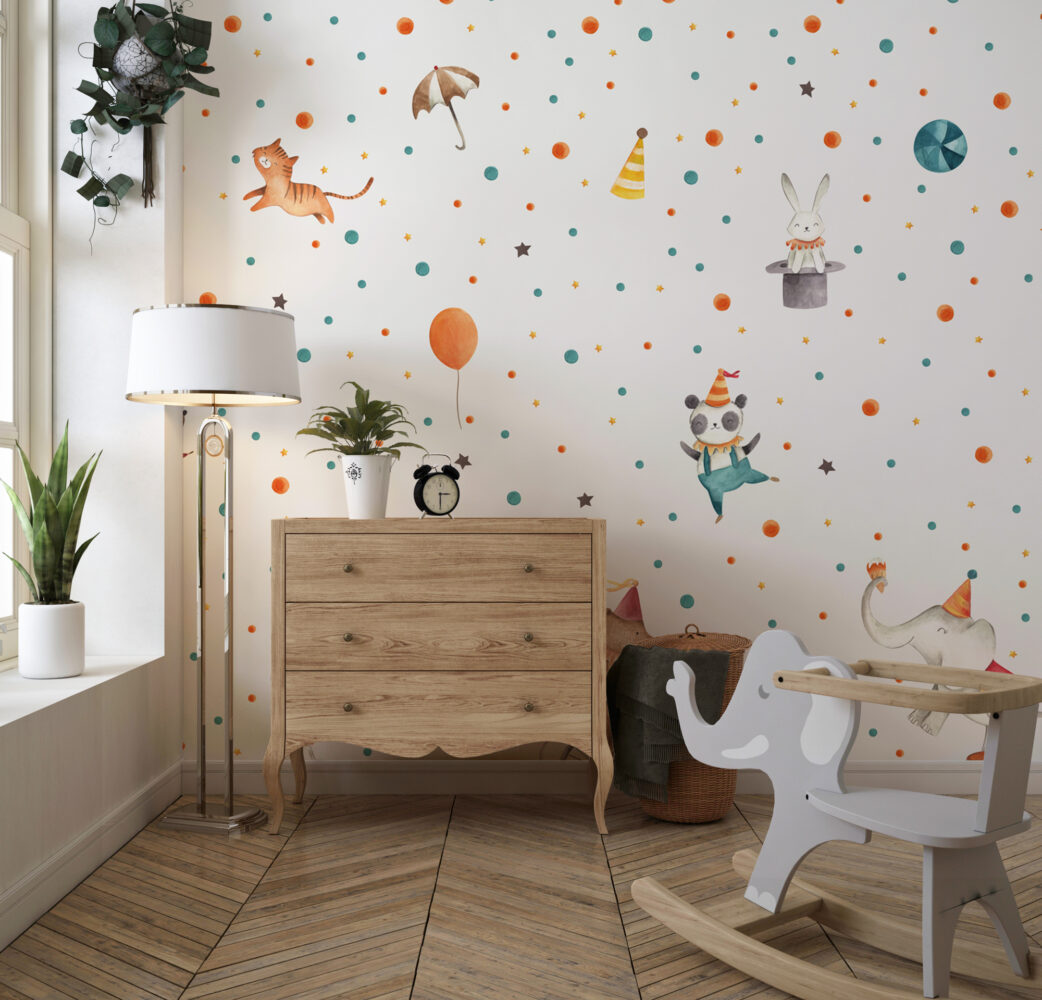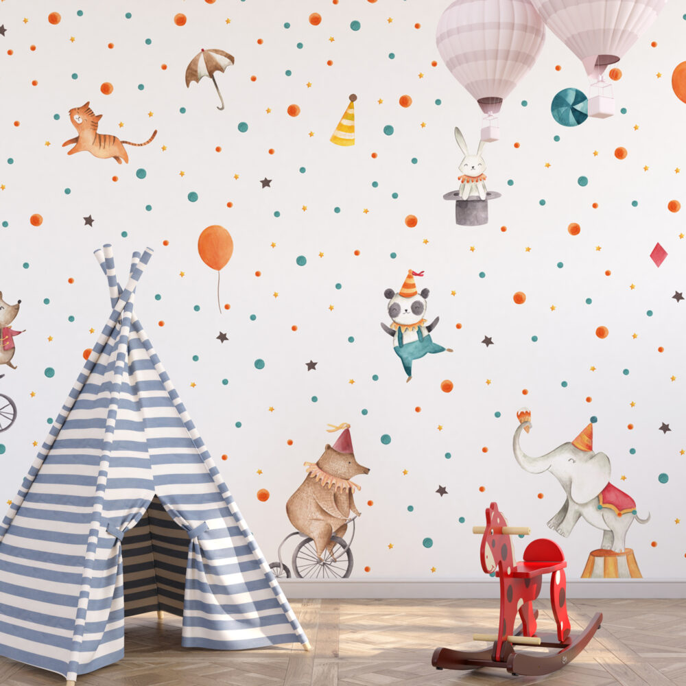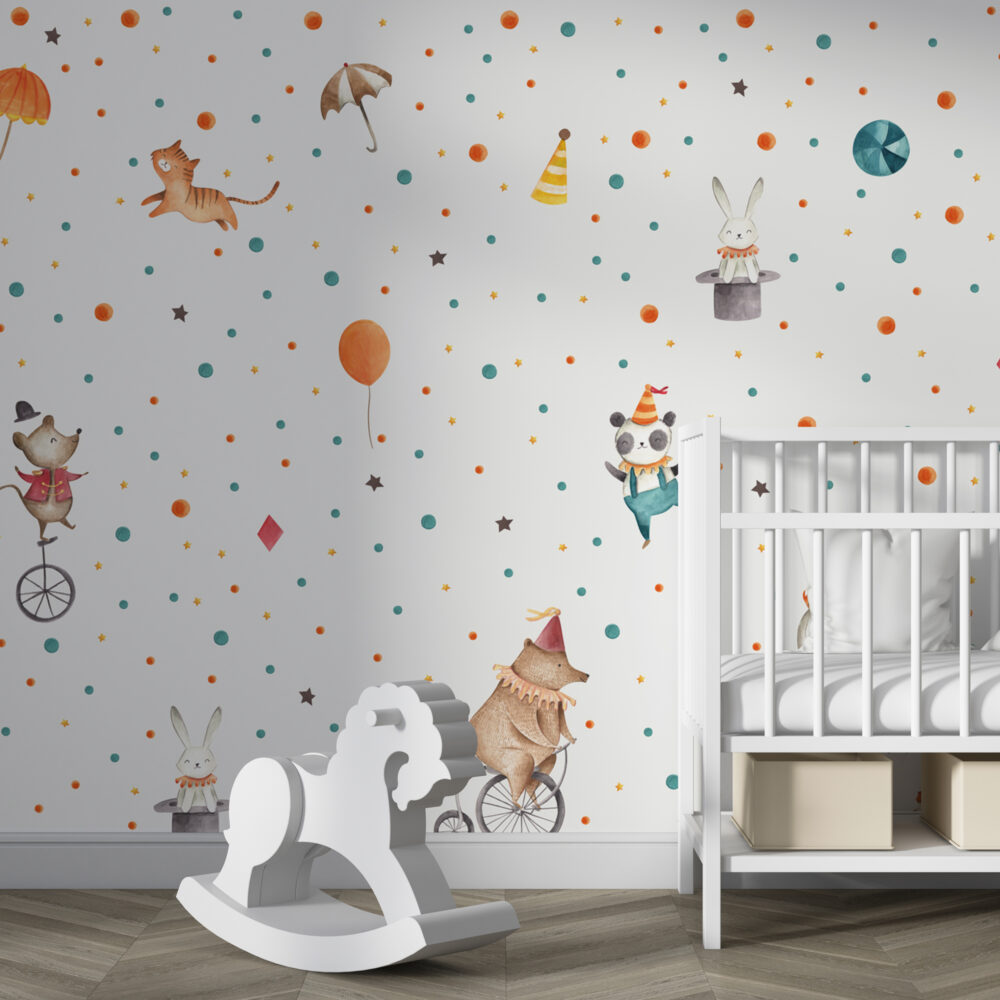 Sirk Hayvanları Desenli Duvar Kağıdı üretimi, uygulanmasını isteyeceğiniz boyut ve konumuna uygun olarak talepleriniz doğrultusunda size özel imal edilir.