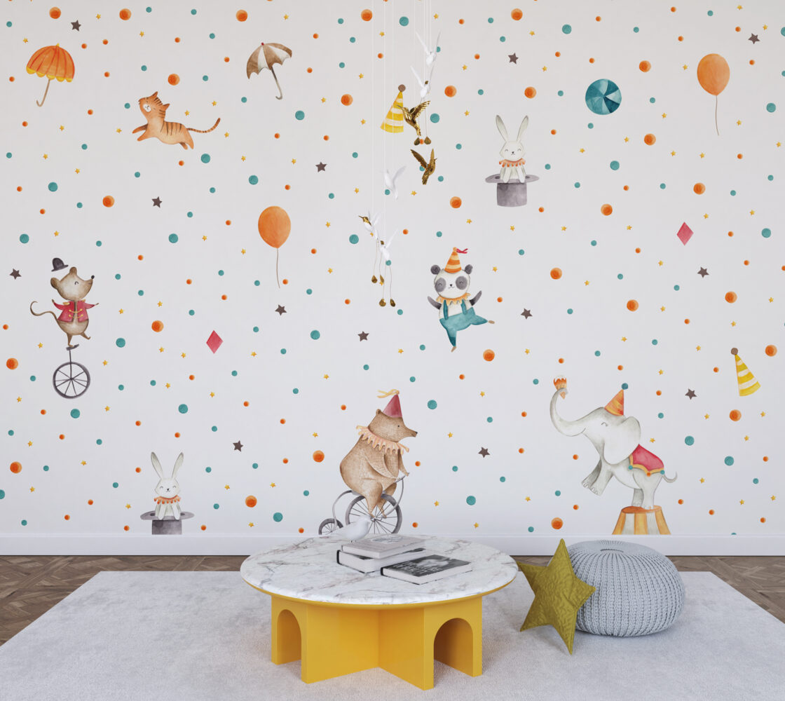 Sirk Hayvanları Desenli Duvar Kağıdı