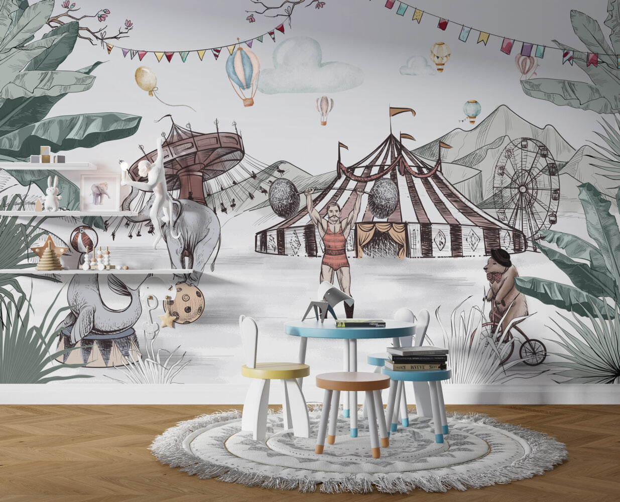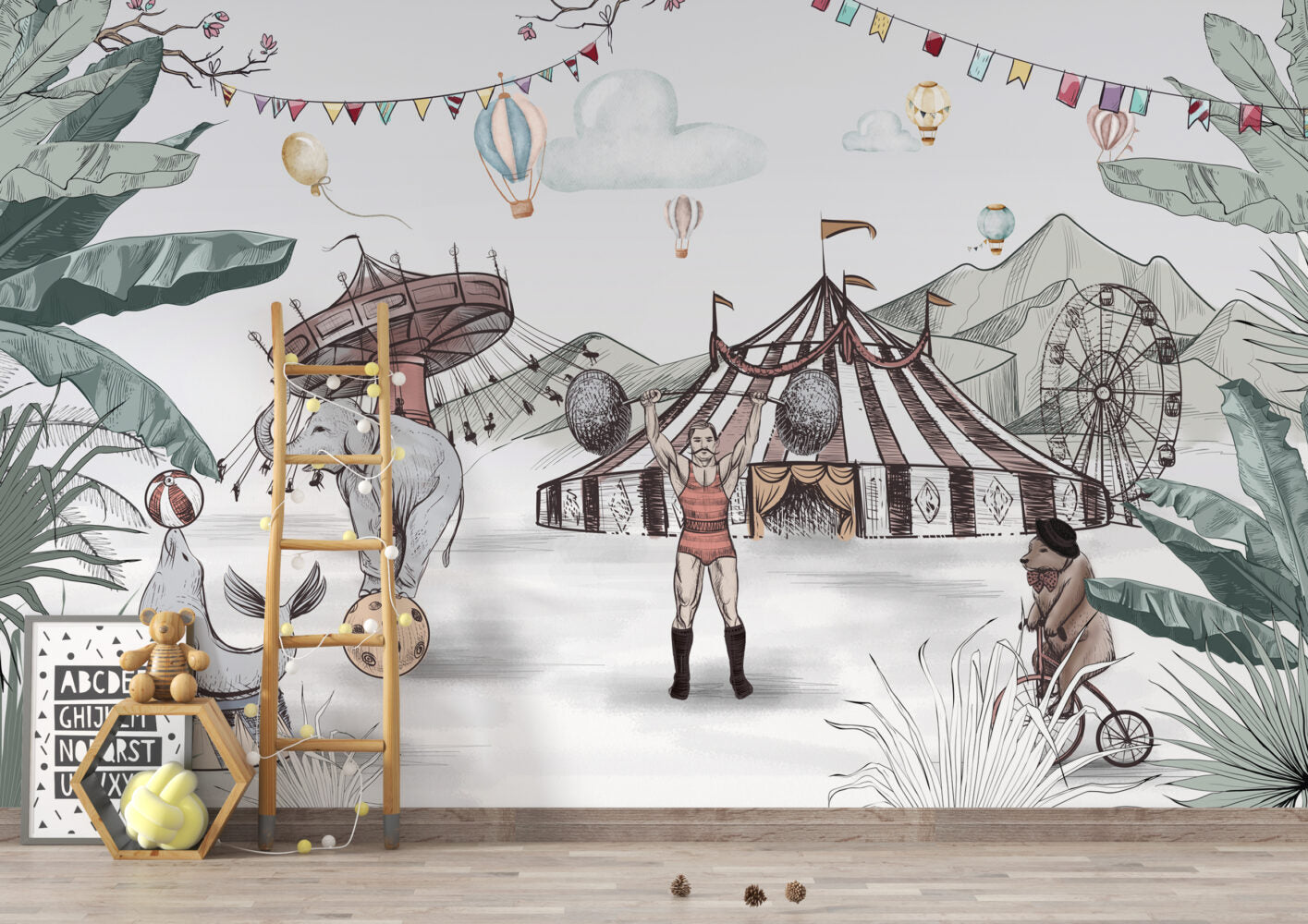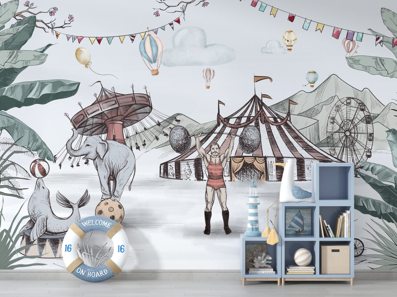 Sirkteki Hayvanlar Duvar Kağıdı | Duvar Kağıdı Marketi üretimi, uygulanmasını isteyeceğiniz boyut ve konumuna uygun olarak talepleriniz doğrultusunda size özel imal edilir.