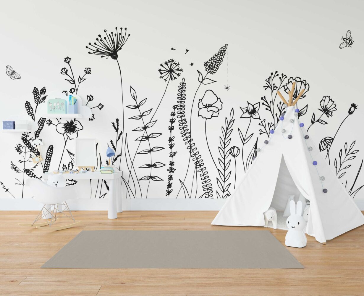 Siyah Beyaz Çiçekler 3D Duvar Kağıdı üretimi, uygulanmasını isteyeceğiniz boyut ve konumuna uygun olarak talepleriniz doğrultusunda size özel imal edilir.
