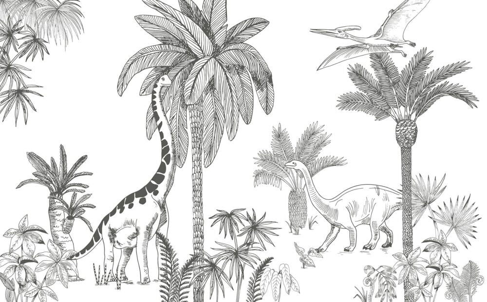 Siyah Beyaz Dinazorlu 3D Duvar Kağıdı