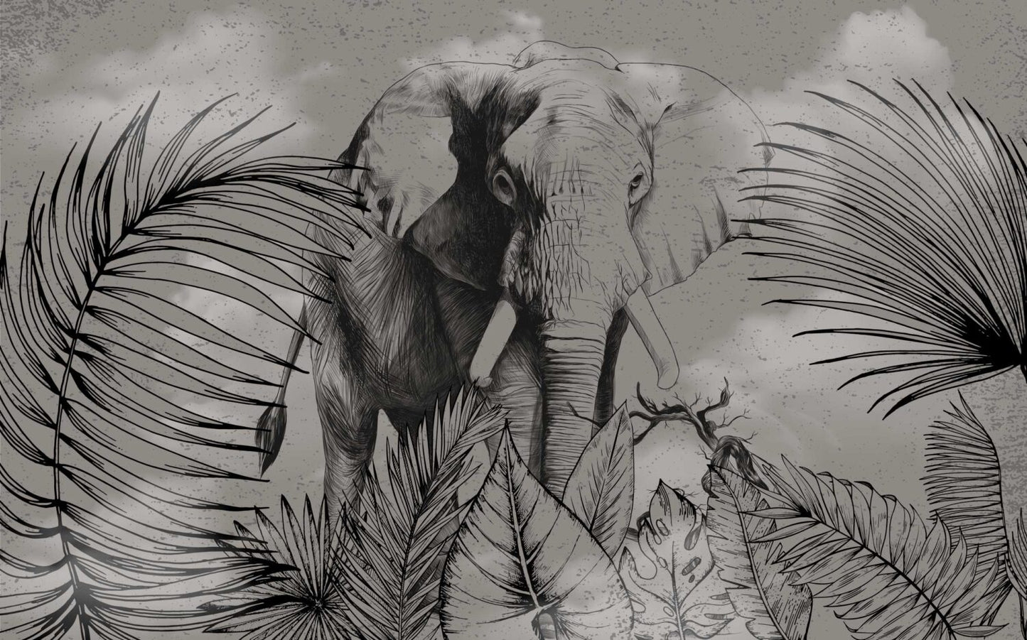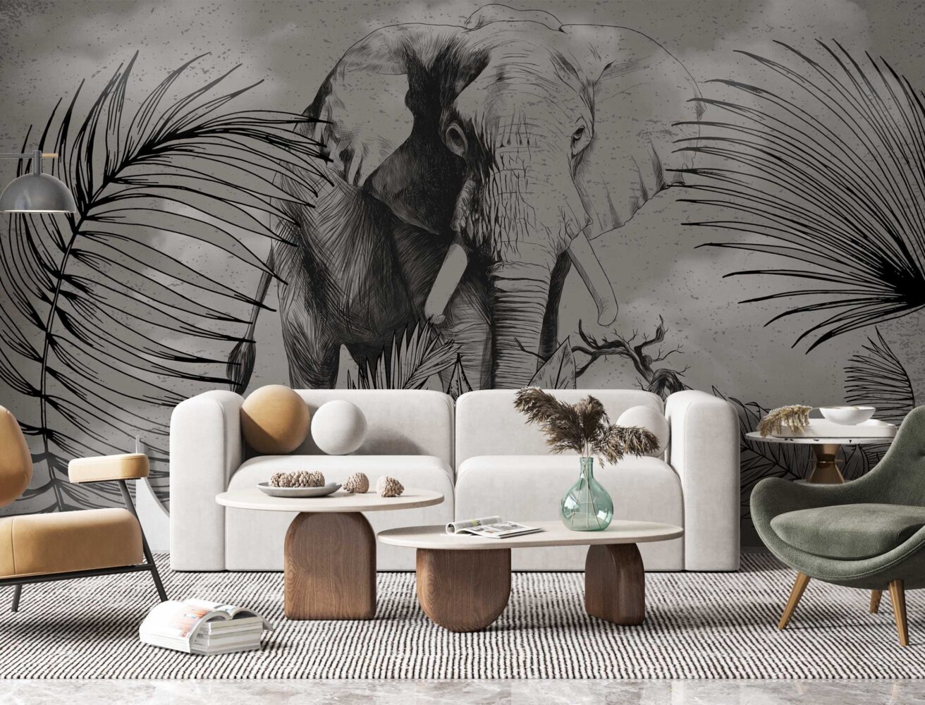 Siyah Beyaz Fil Desenli Duvar Kağıdı
