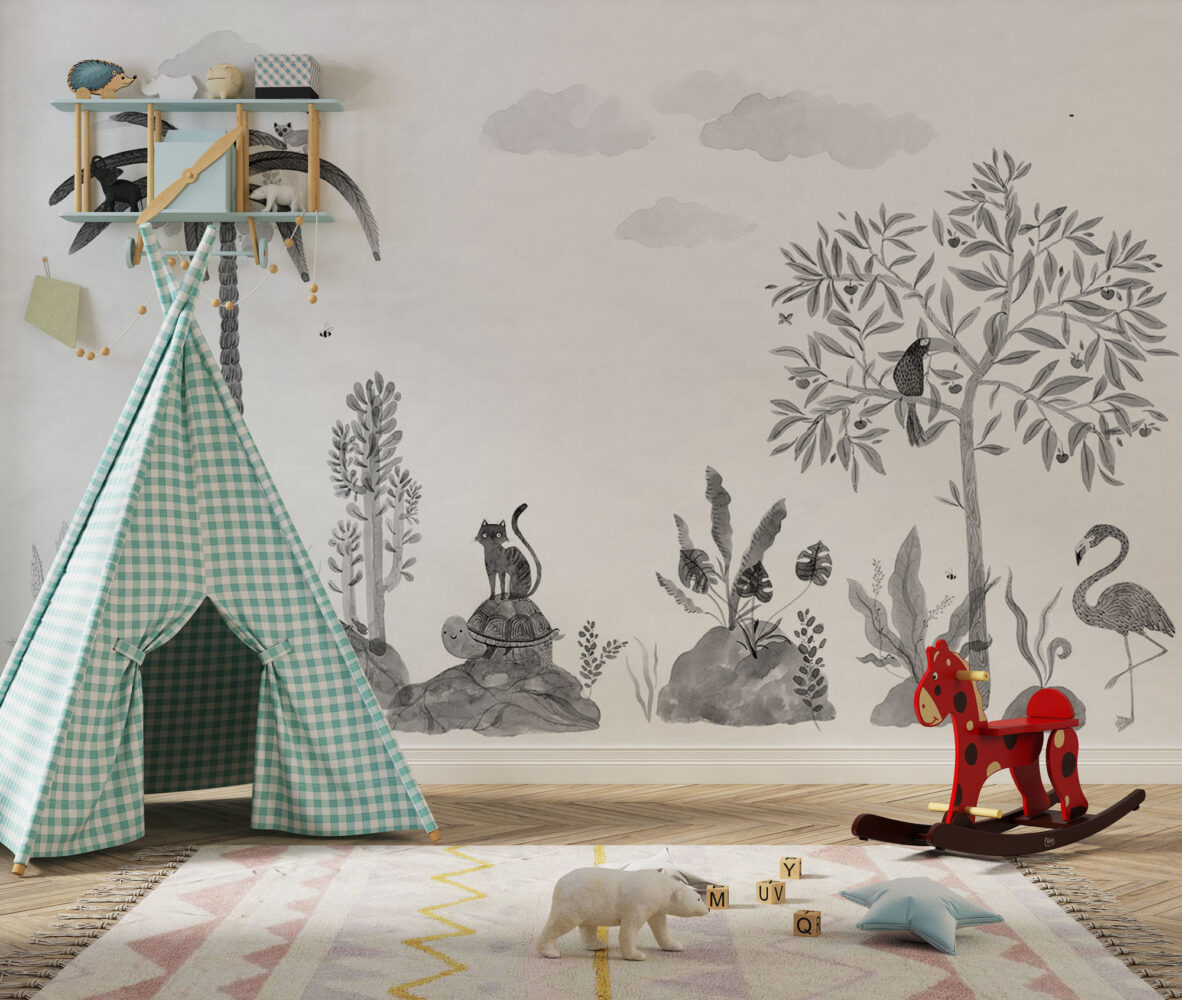 Siyah Beyaz Hayvanlar Çizim Duvar Kağıdı üretimi, uygulanmasını isteyeceğiniz boyut ve konumuna uygun olarak talepleriniz doğrultusunda size özel imal edilir.