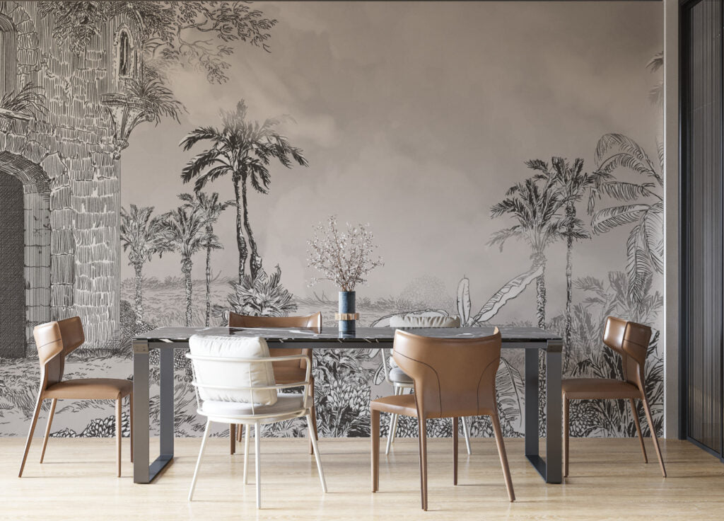 Siyah Beyaz Karekalemli Tropikal Desenli 3D Duvar Kağıdı üretimi, uygulanmasını isteyeceğiniz boyut ve konumuna uygun olarak talepleriniz doğrultusunda size özel imal edilir.