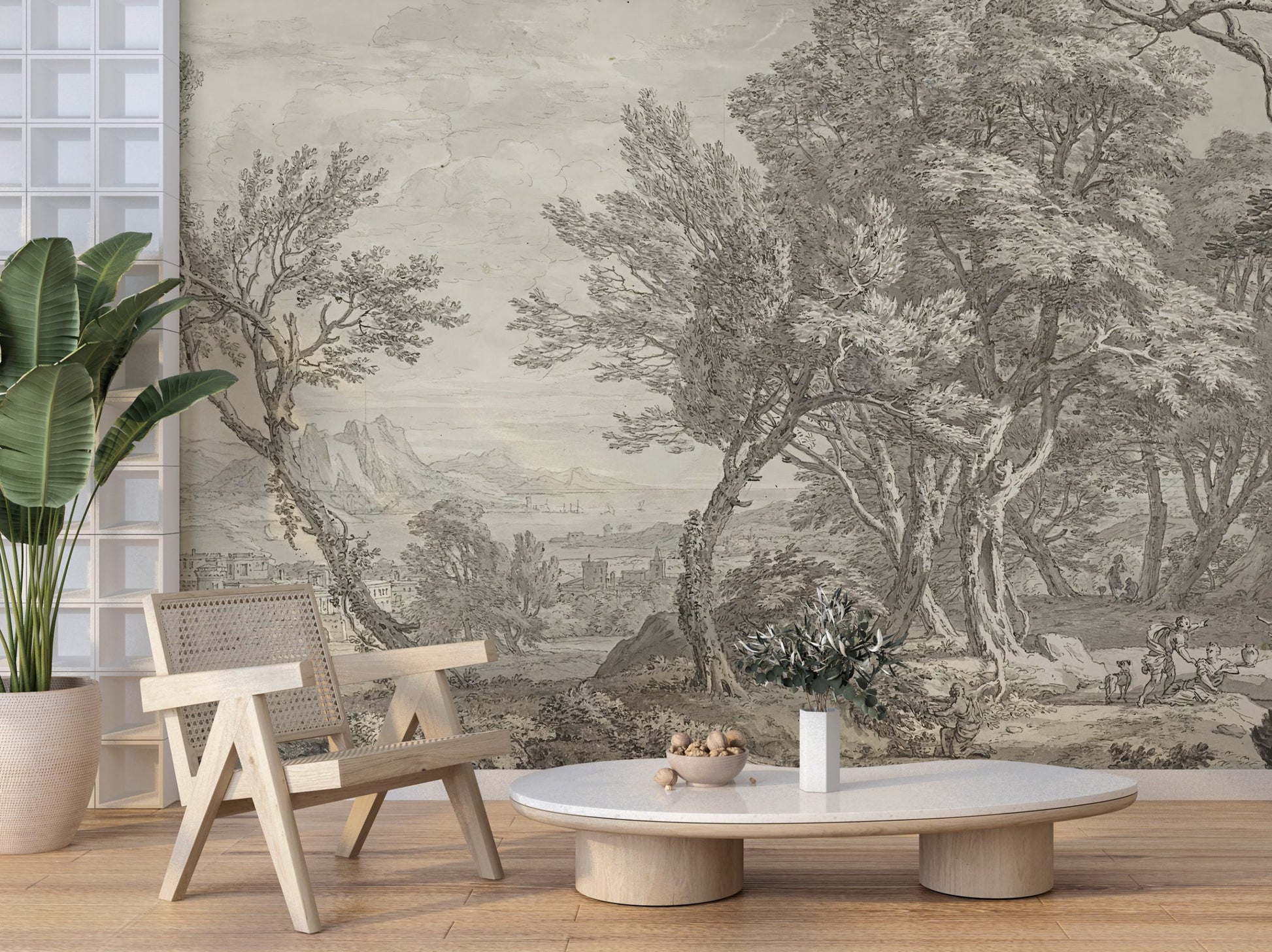 Siyah Beyaz Orman ve Şehir Duvar Kağıdı Duvar Kağıdı Ürün Bilgisi