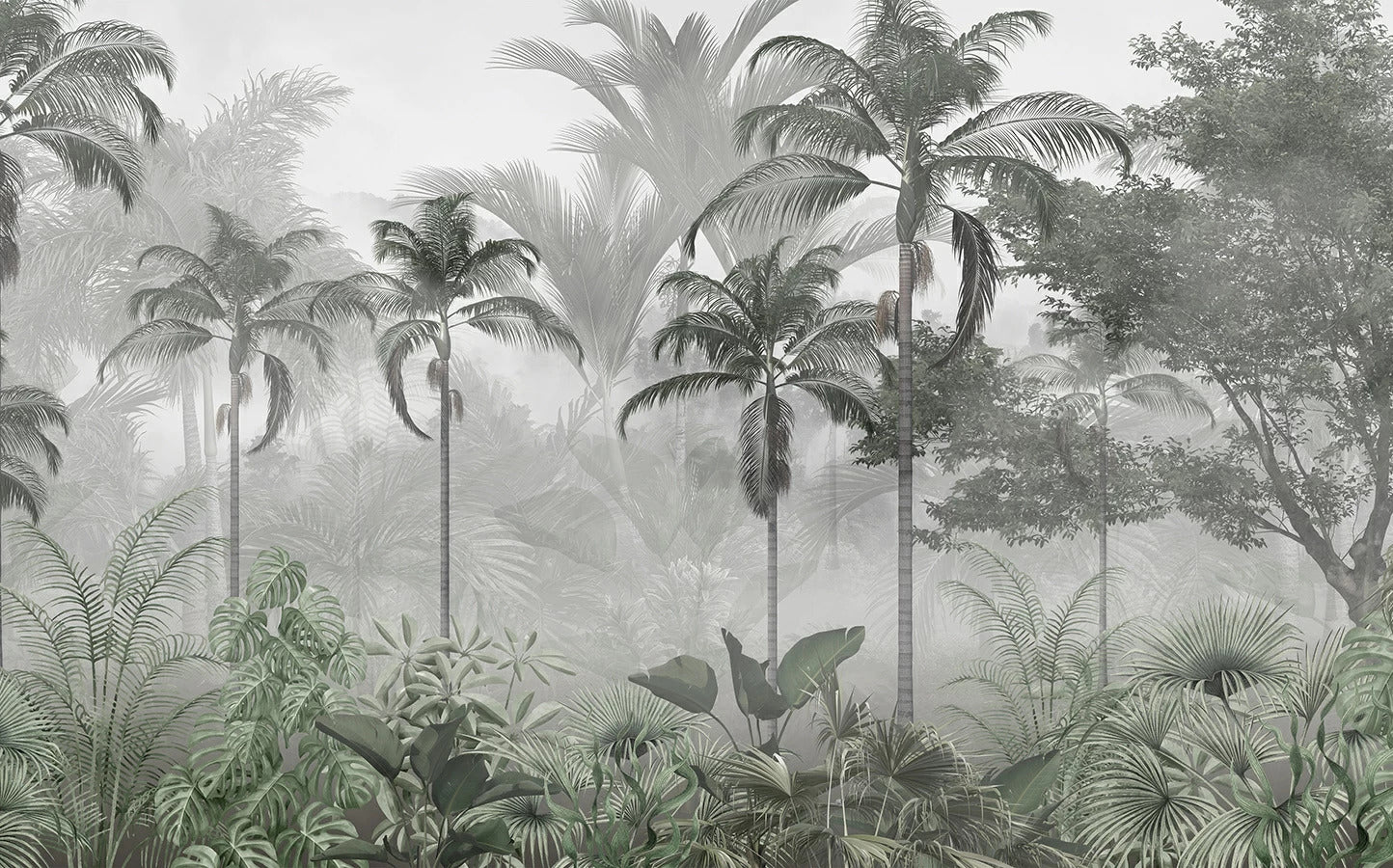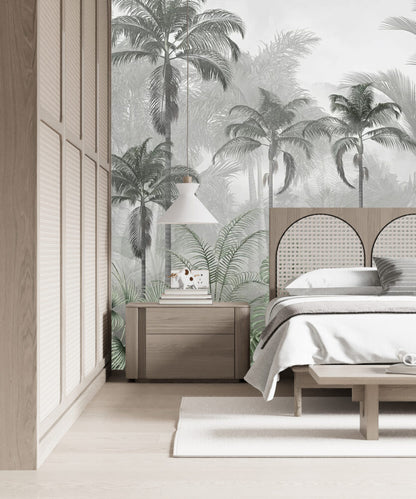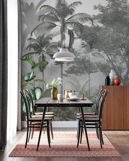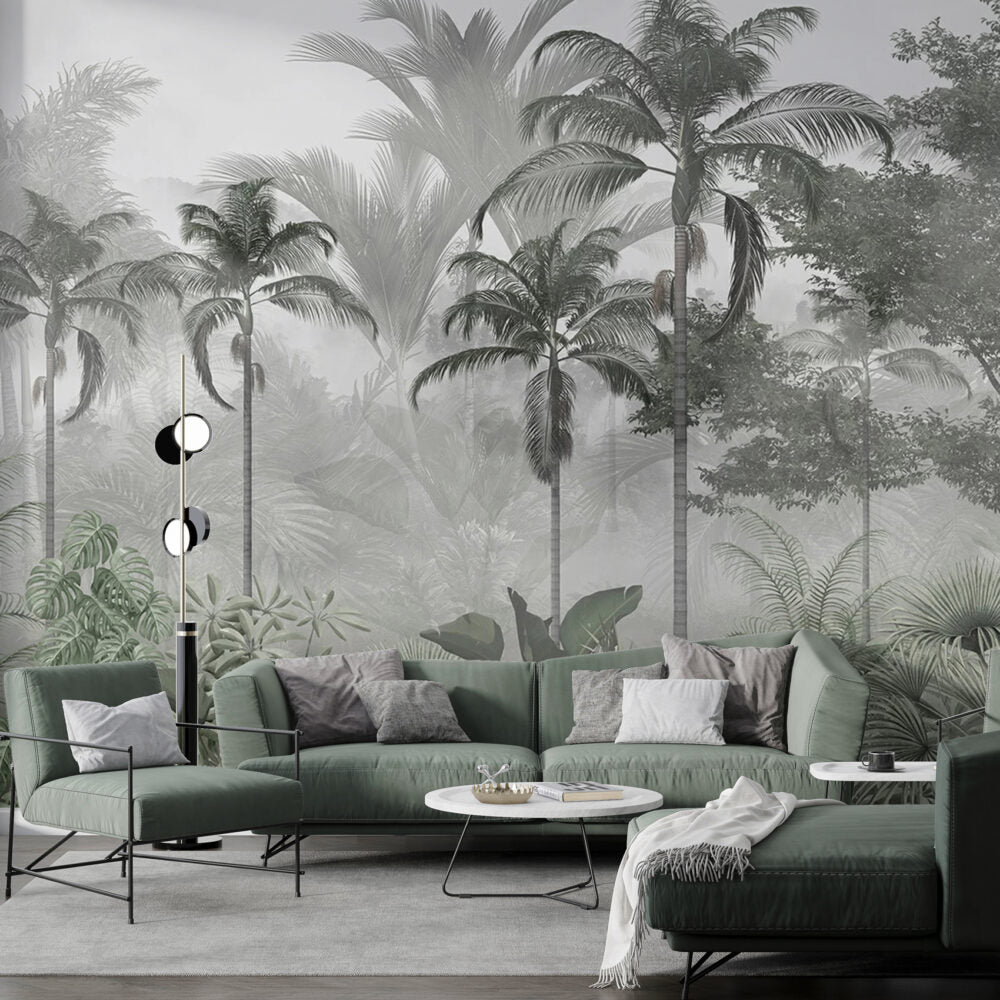 Siyah Beyaz Palmiye Ağaçlı Tropikal Orman Duvar Kağıdı üretimi, uygulanmasını isteyeceğiniz boyut ve konumuna uygun olarak talepleriniz doğrultusunda size özel imal edilir.