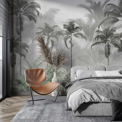 Siyah Beyaz Palmiye Ağaçlı Tropikal Orman Duvar Kağıdı