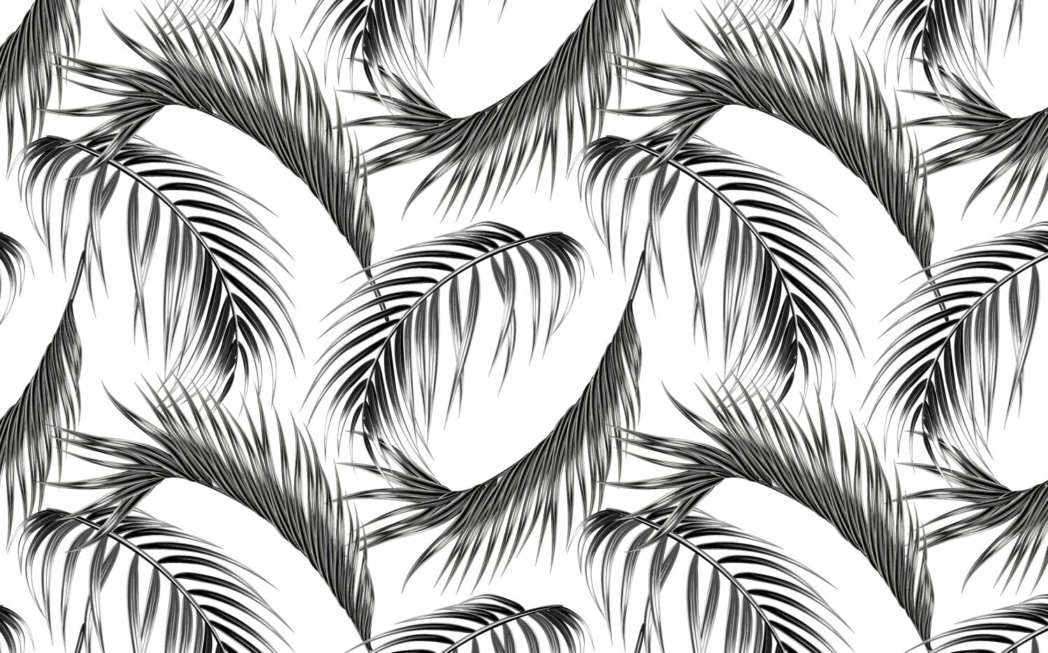 Siyah Beyaz Palmiye Yaprakları Duvar Kağıdı