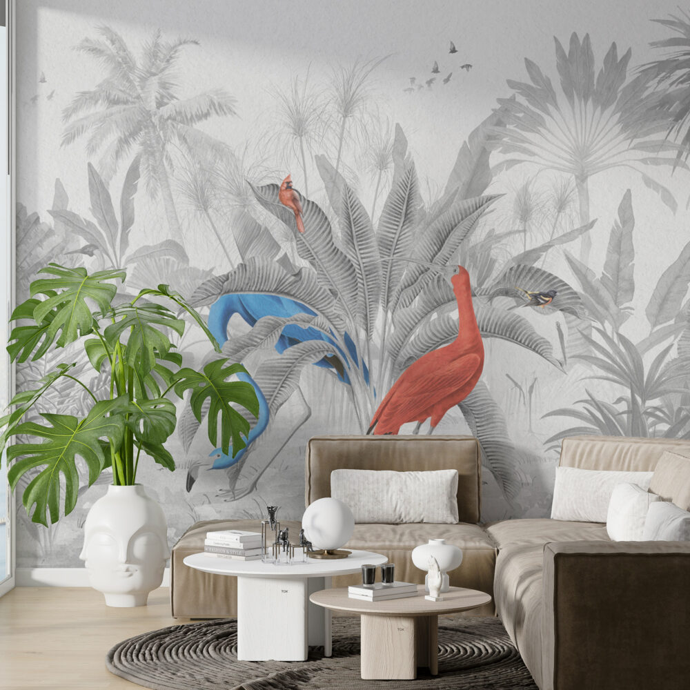 Siyah Beyaz Tonlarda Renkli Flamingo 3D Duvar Kağıdı Duvar Kağıdı Ürün Bilgisi