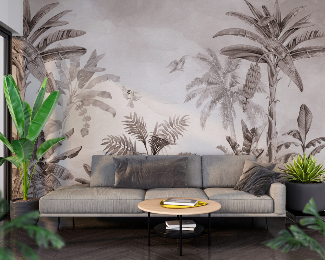 Siyah Beyaz Tropikal Ağaç Desenli Duvar Kağıdı üretimi, uygulanmasını isteyeceğiniz boyut ve konumuna uygun olarak talepleriniz doğrultusunda size özel imal edilir.