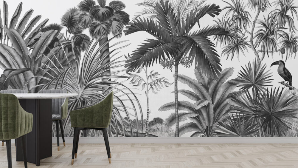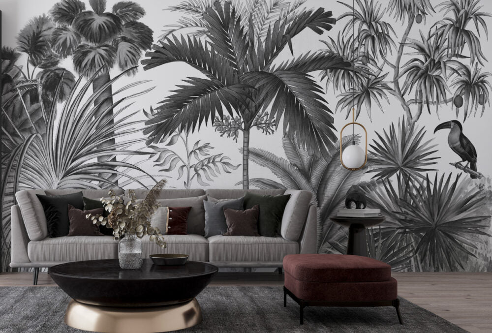 Siyah Beyaz Tropikal Kuşlu Duvar Kağıdı üretimi, uygulanmasını isteyeceğiniz boyut ve konumuna uygun olarak talepleriniz doğrultusunda size özel imal edilir.