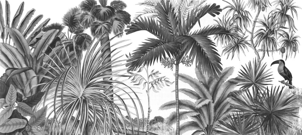 Siyah Beyaz Tropikal Kuşlu Duvar Kağıdı