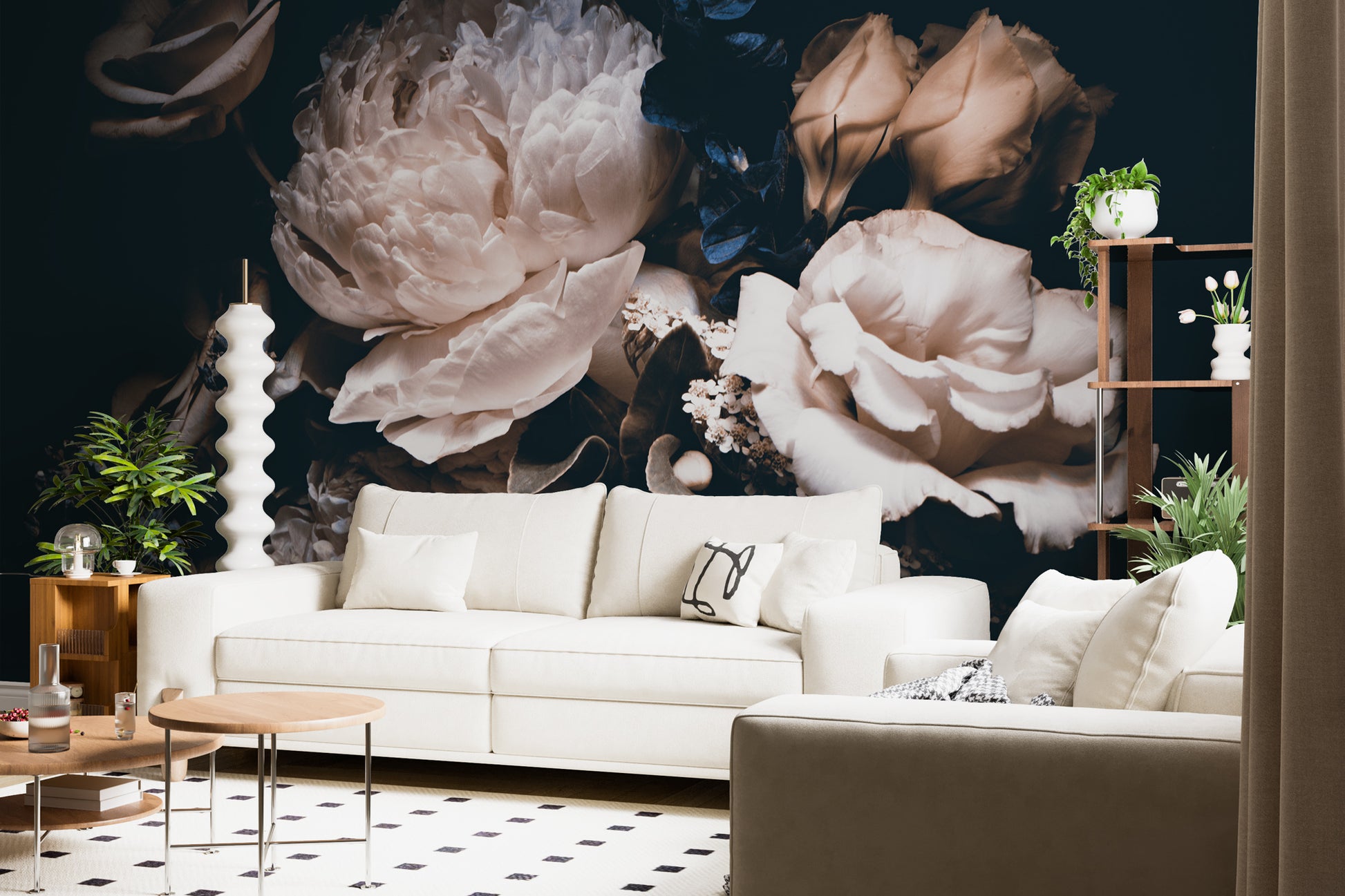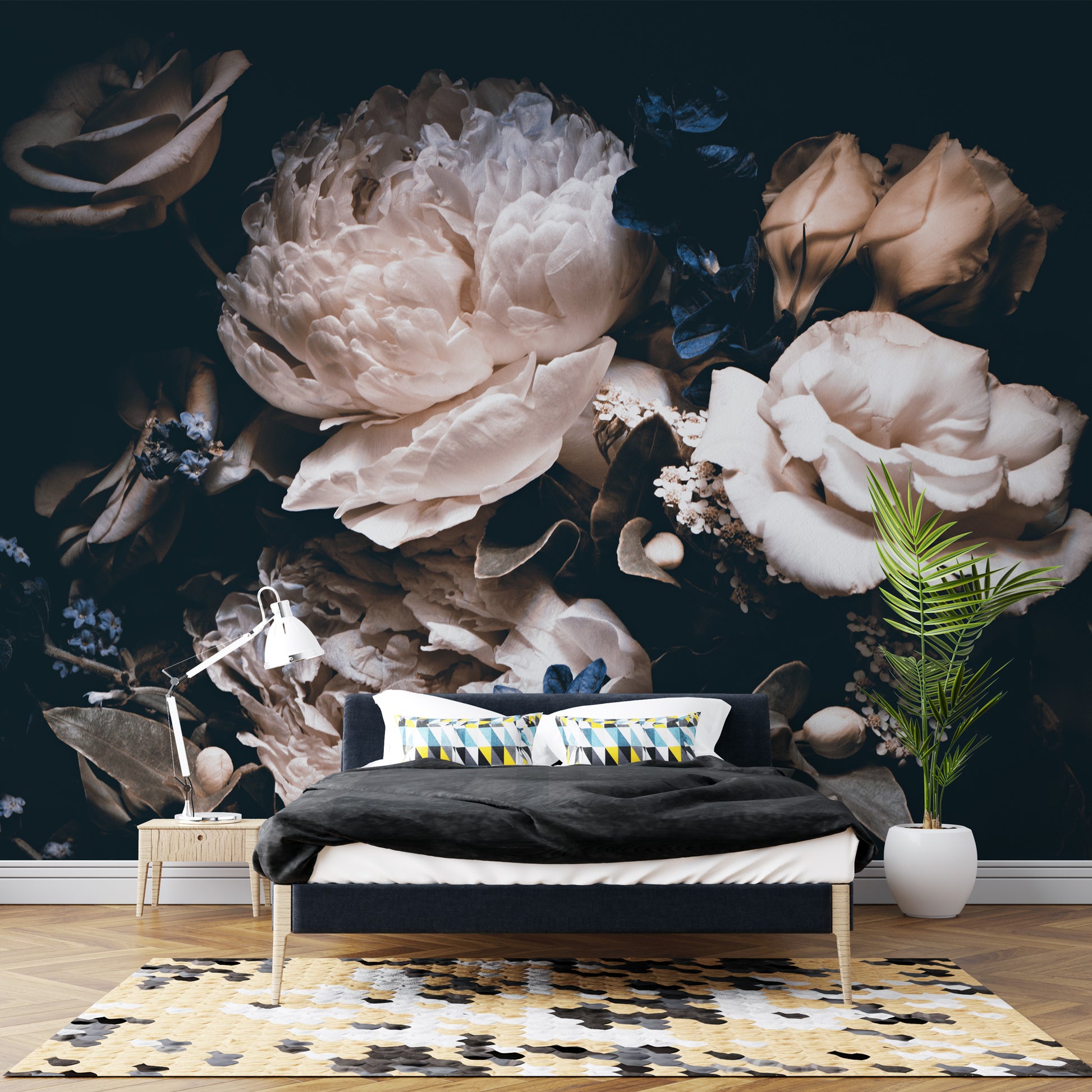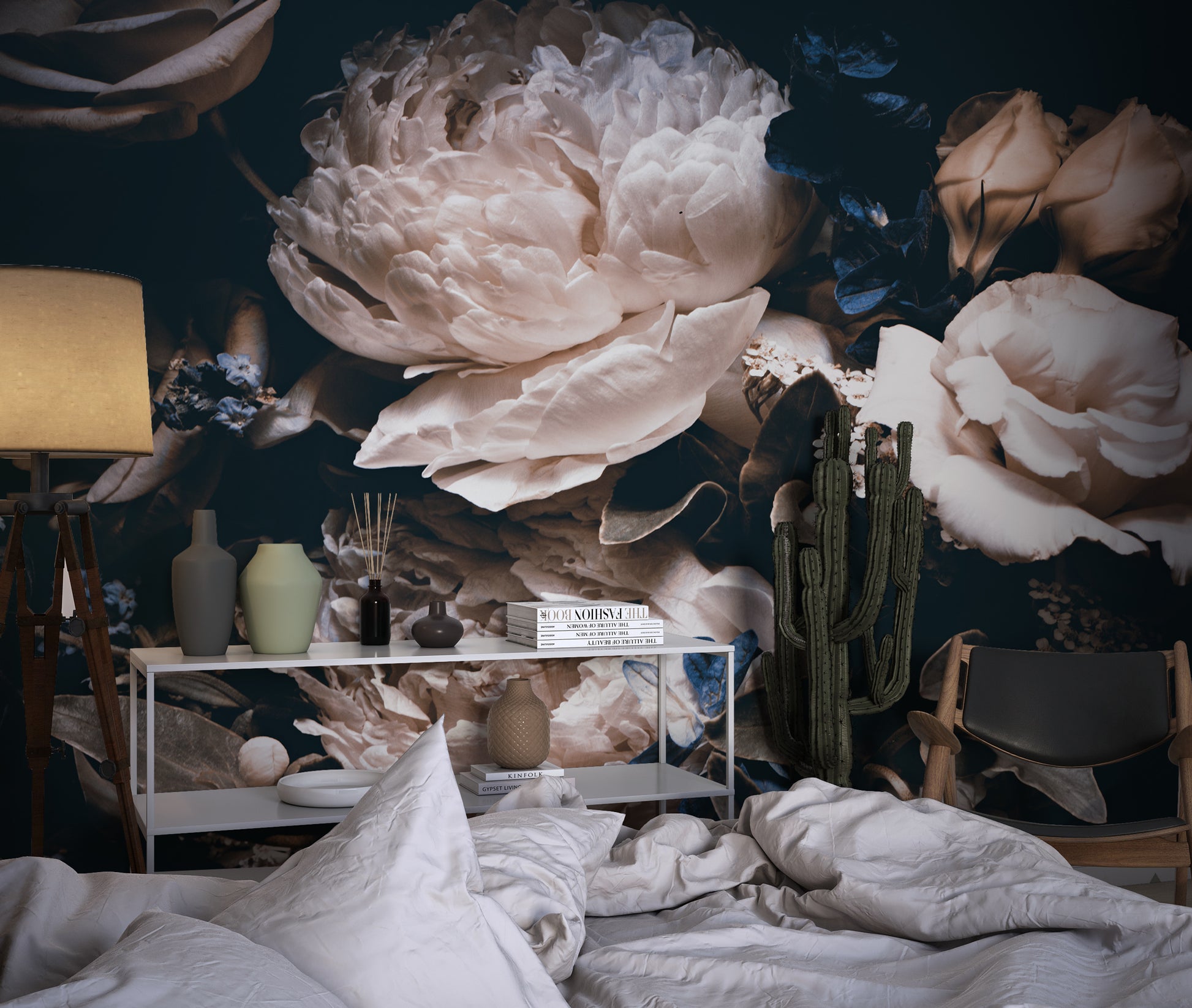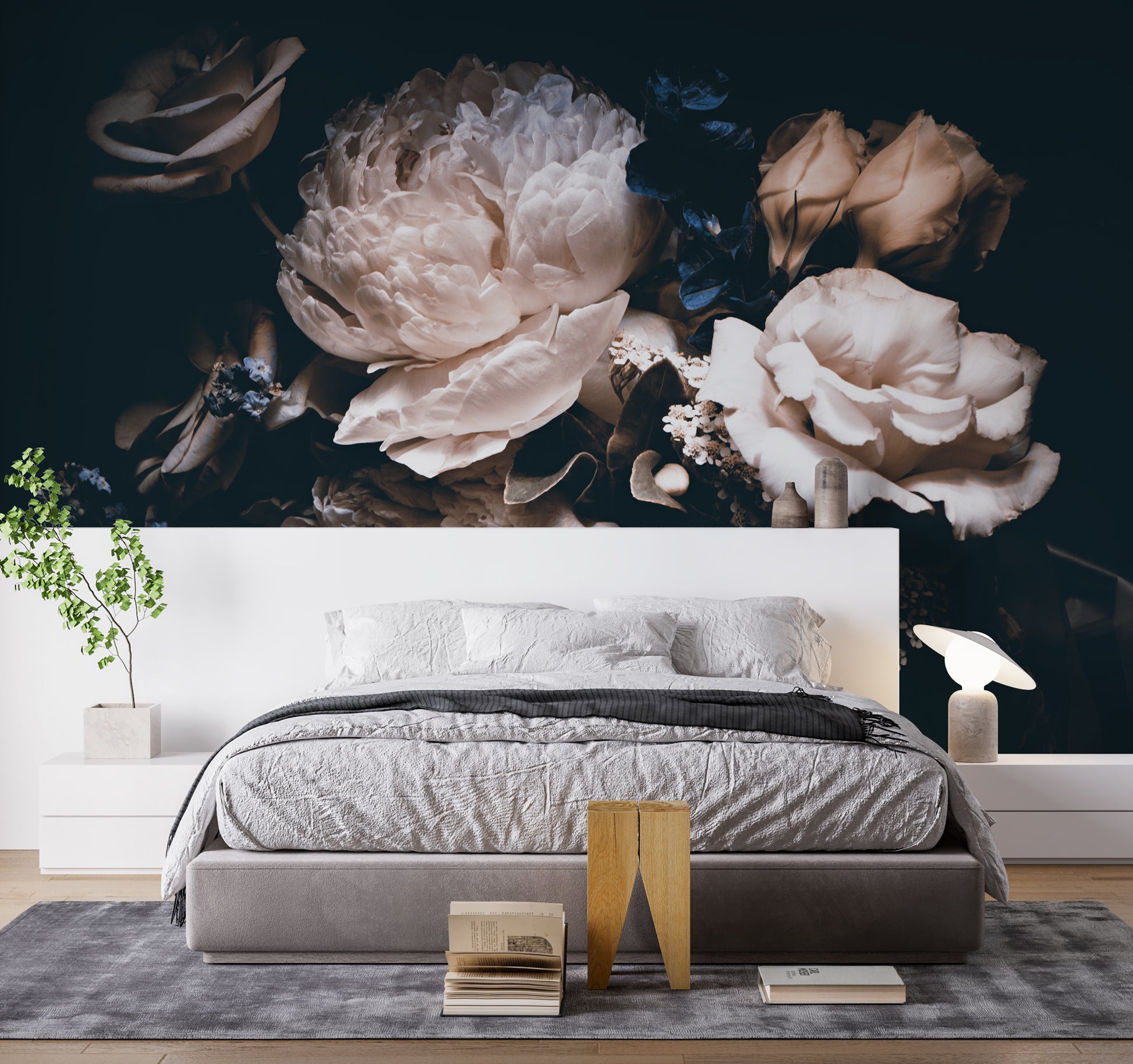 Siyah Fonda Şakayık Ve Güller Duvar Kağıdı üretimi, uygulanmasını isteyeceğiniz boyut ve konumuna uygun olarak talepleriniz doğrultusunda size özel imal edilir.