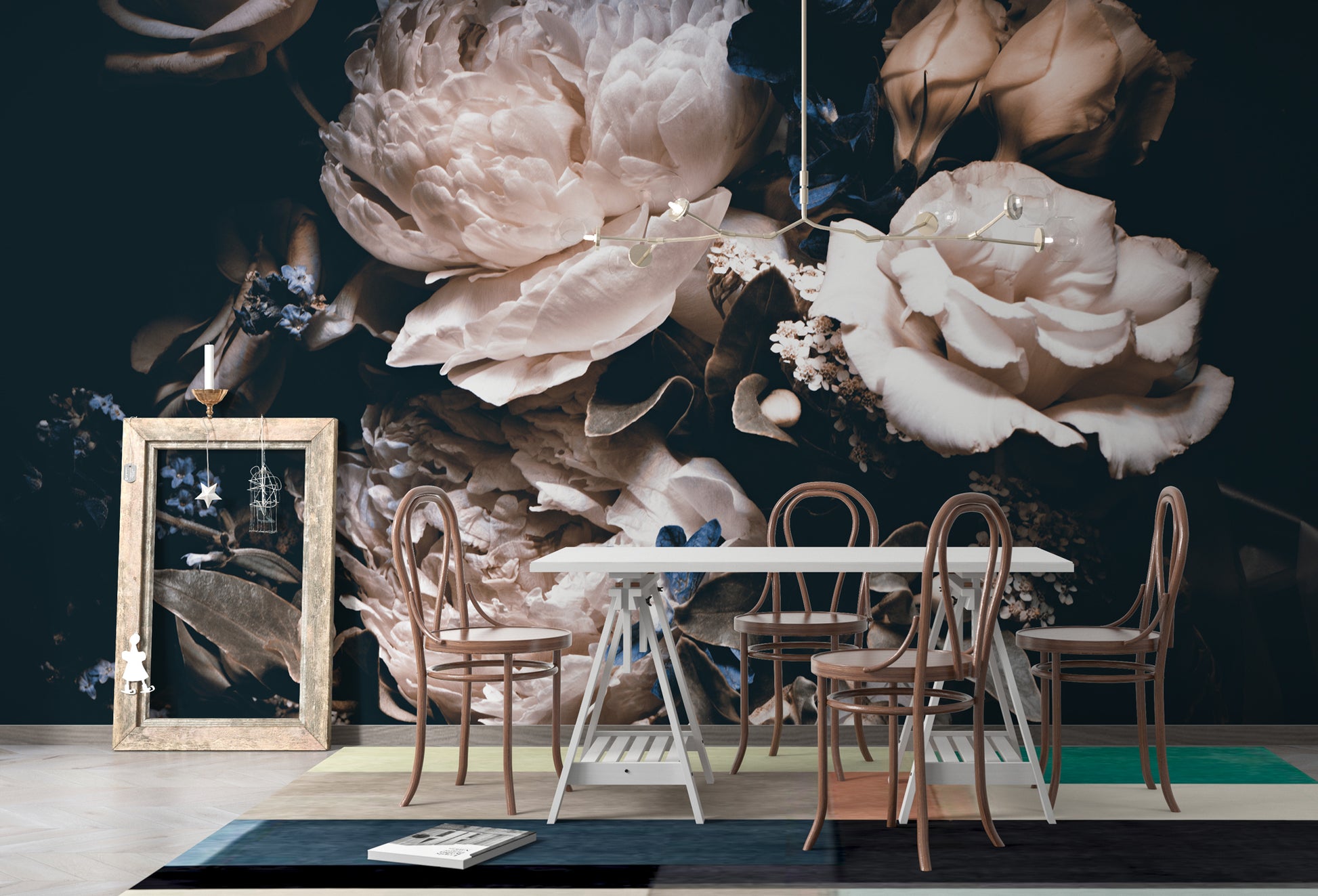 Siyah Fonda Şakayık Ve Güller Duvar Kağıdı Duvar Kağıdı Ürün Bilgisi
