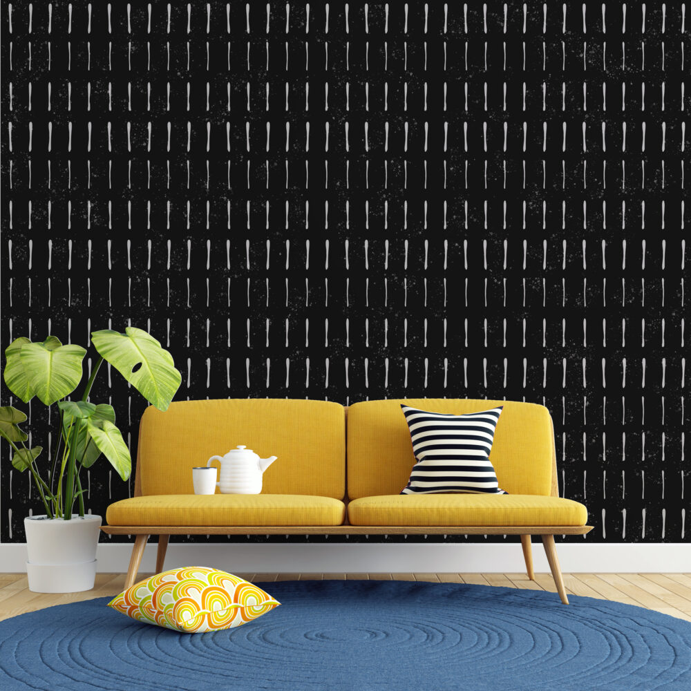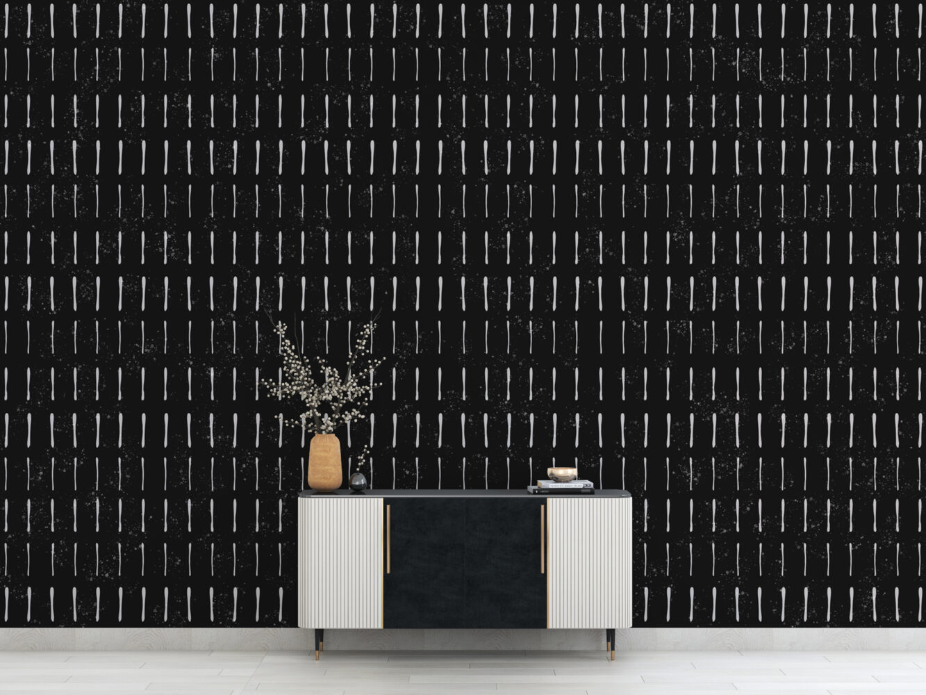 Siyah Zemin Üzerinde Beyaz Çizgiler Desen Duvar Kağıdı üretimi, uygulanmasını isteyeceğiniz boyut ve konumuna uygun olarak talepleriniz doğrultusunda size özel imal edilir.