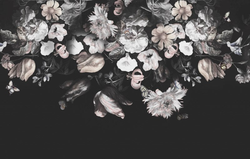 Siyah Zemindeki Soft Çiçekler Duvar Kağıdı