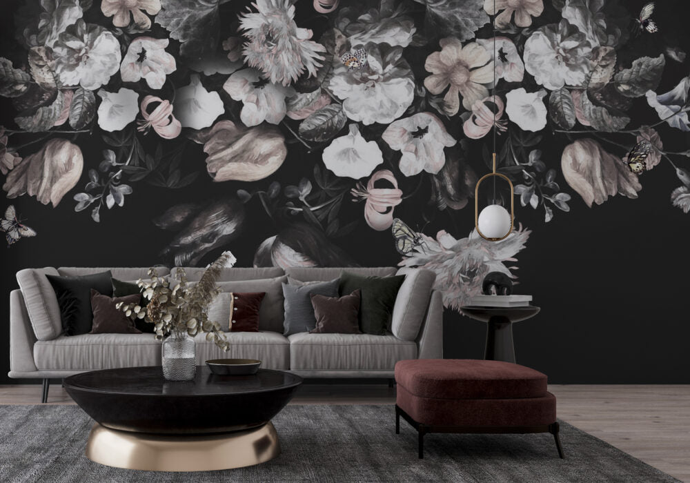 Siyah Zemindeki Soft Çiçekler Duvar Kağıdı Duvar Kağıdı Ürün Bilgisi