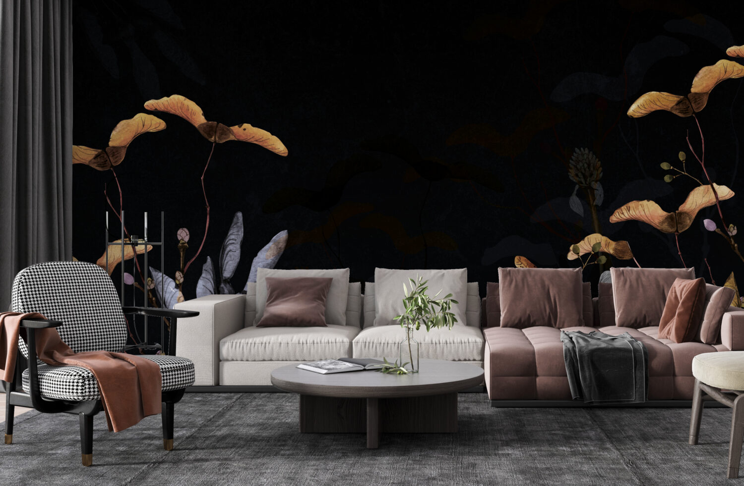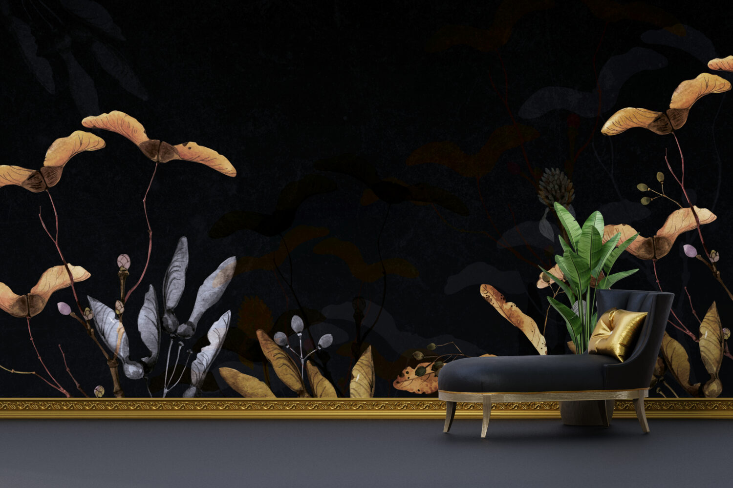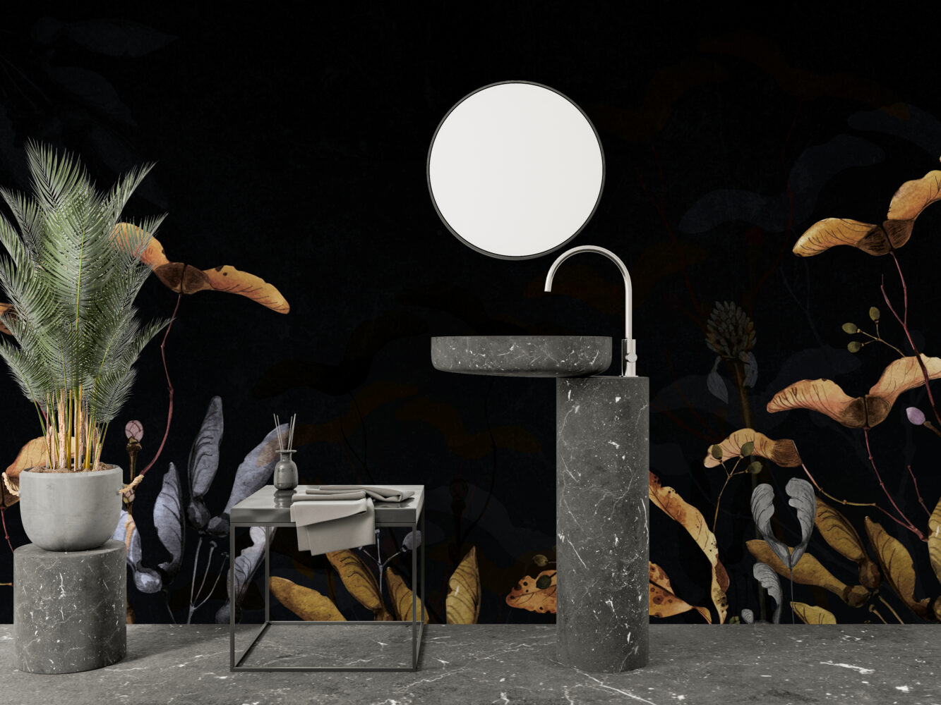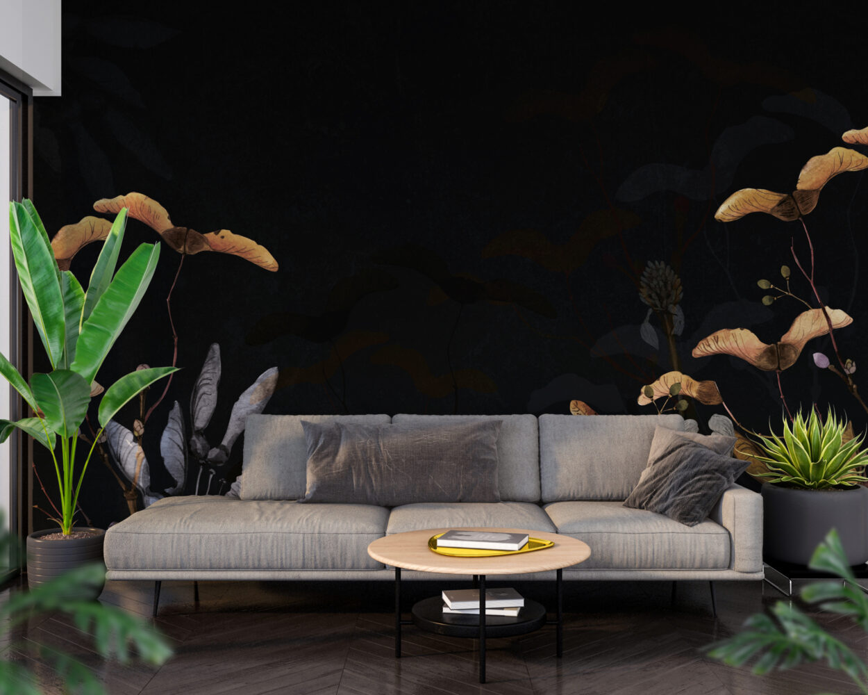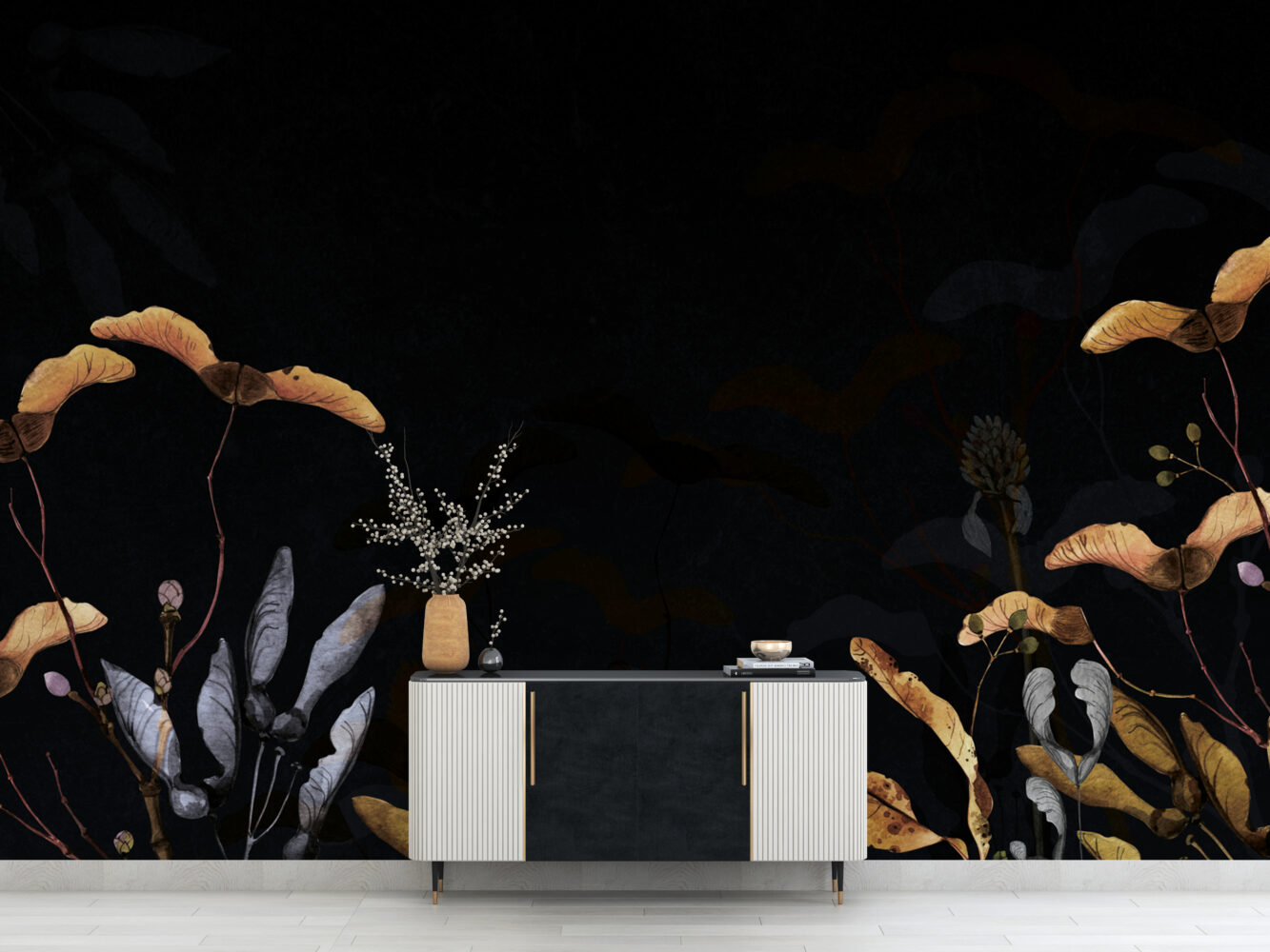 Siyah Zeminli Çiçek Yaprakları Duvar Kağıdı Duvar Kağıdı Ürün Bilgisi