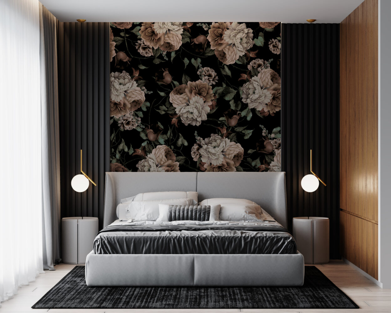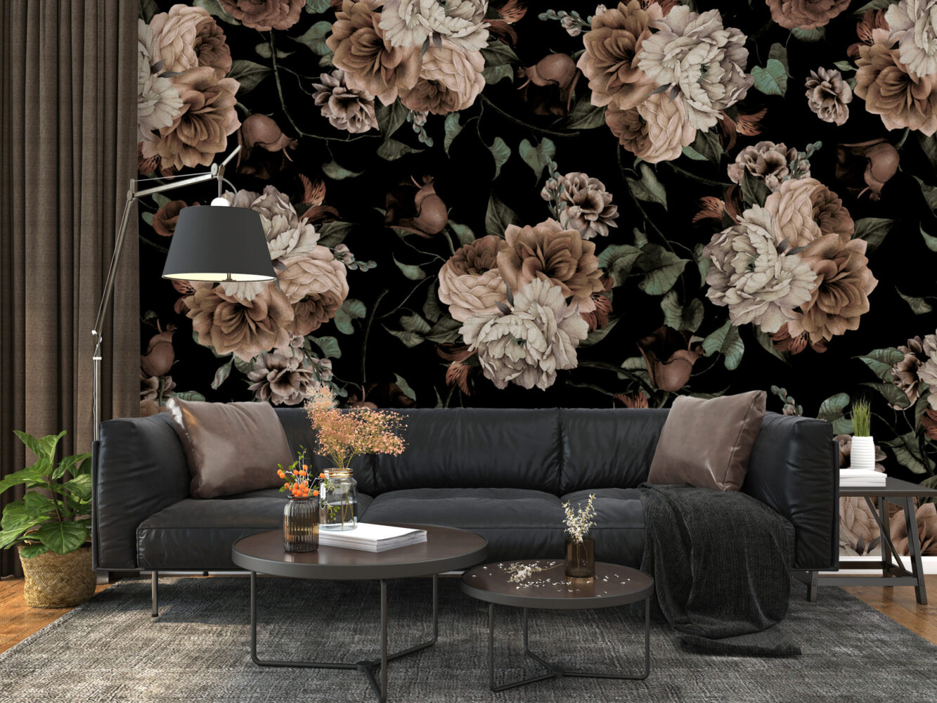 Siyah Zeminli Soft Güller 3D Duvar Kağıdı