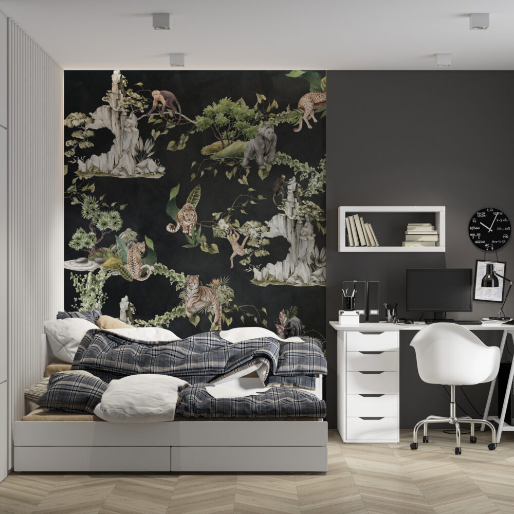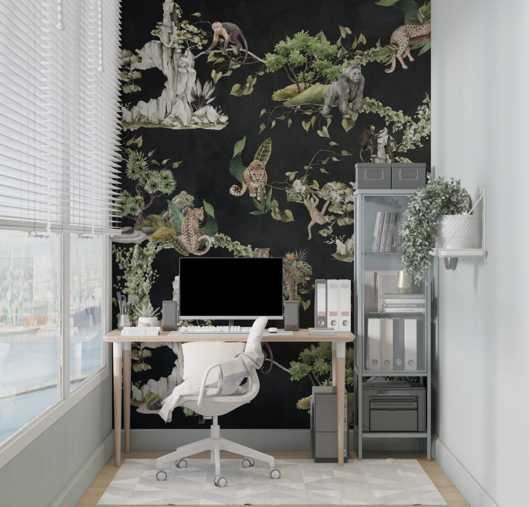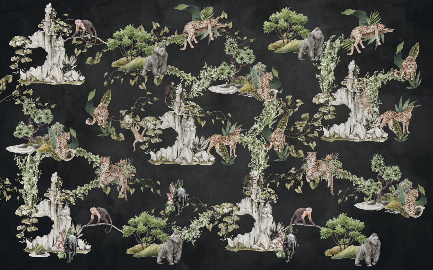 Siyah Zeminli Tropikal Hayvanlar Duvar Kağıdı üretimi, uygulanmasını isteyeceğiniz boyut ve konumuna uygun olarak talepleriniz doğrultusunda size özel imal edilir.