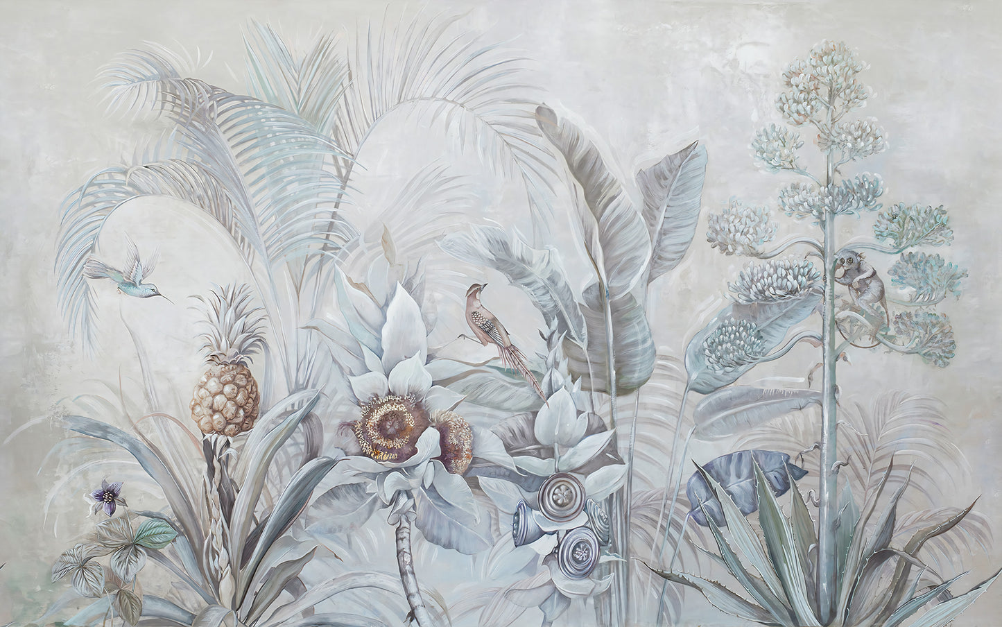 Soft Gri Ağaçlar ve Kuşlar Duvar Kağıdı