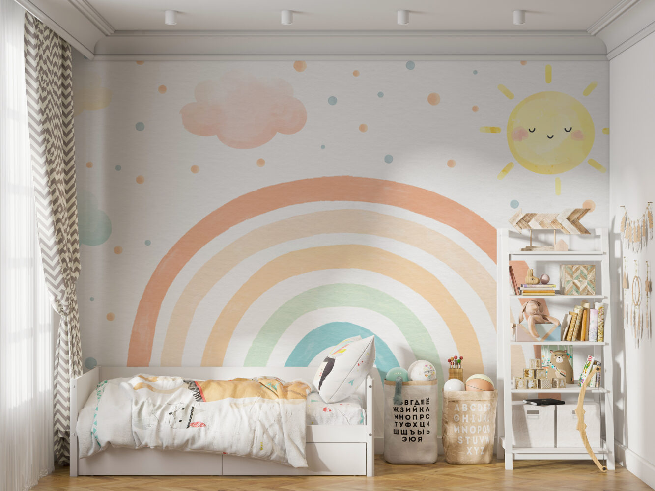 Soft Güneş Ve Gökkuşağı Çocuk Duvar Kağıdı üretimi, uygulanmasını isteyeceğiniz boyut ve konumuna uygun olarak talepleriniz doğrultusunda size özel imal edilir.