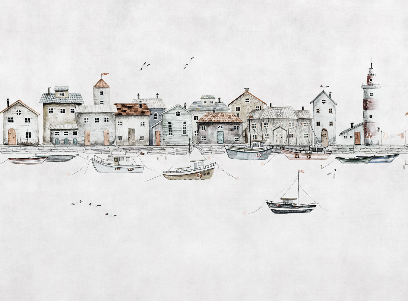Soft Krem Tonlar'da Küçük Evler Denizci Konseptinde 3D Duvar Kağıdı Duvar Kağıdı Ürün Bilgisi
