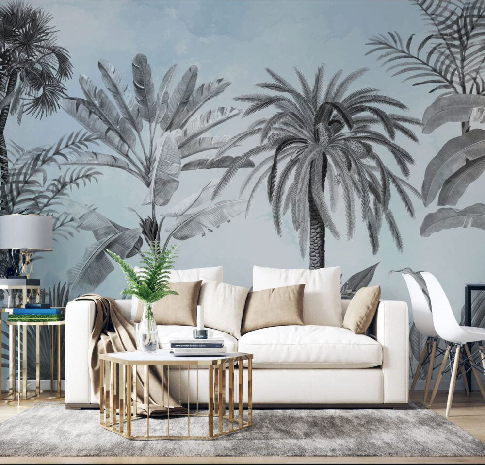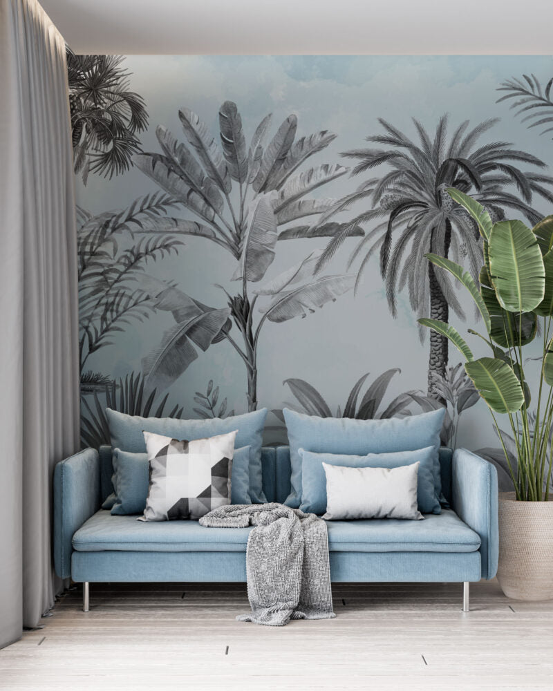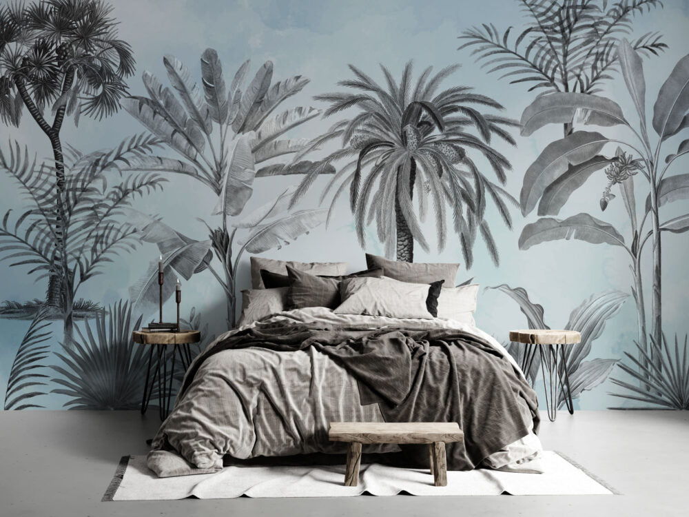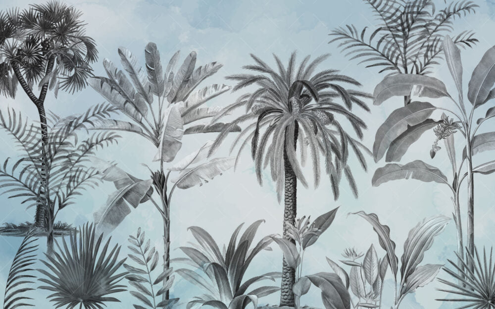 Soft Mavi Tonlar'da Tropikal Ağaçlar Duvar Kağıdı Duvar Kağıdı Ürün Bilgisi