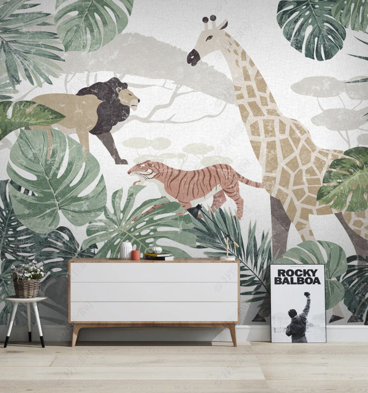 Soft Renkli Çocuk Odası Safari Görünümlü 3D Duvar Kağıdı Duvar Kağıdı Ürün Bilgisi