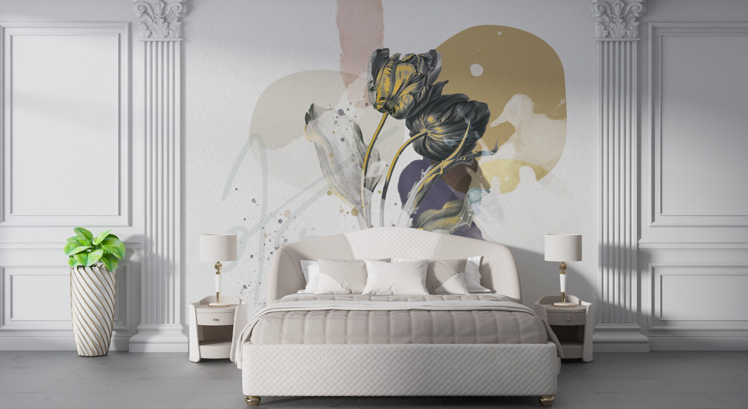 Soft Sarı Arka planlı Siyah Çiçek 3D Duvar Kağıdı üretimi, uygulanmasını isteyeceğiniz boyut ve konumuna uygun olarak talepleriniz doğrultusunda size özel imal edilir.